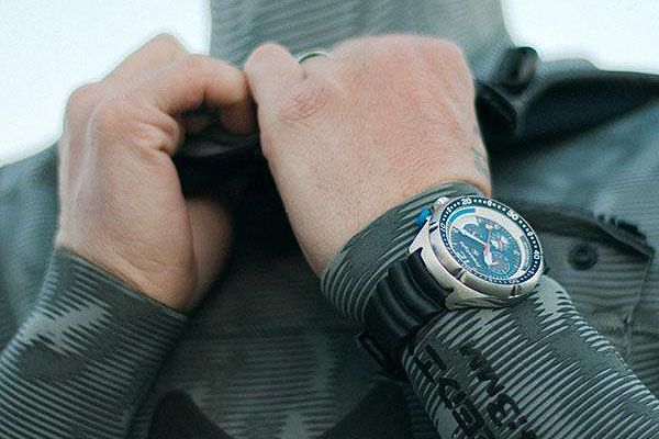 これらのボタンは“ハイドロプッシャー”と呼ばれ、水中でのボタン操作を可能にしている。これは一般的な機械式クロノグラフでは絶対に不可能(要注意)だ。ハイドロプッシャーは全部で4つある。モードボタン、バックライトを作動させるボタン、計時またはストップウォッチ機能を開始するボタン、そしてリセットボタンだ。