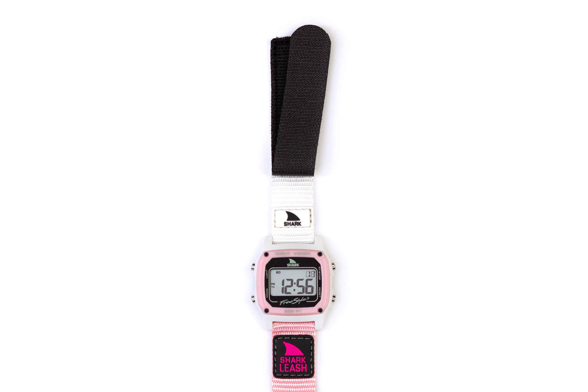 オリジナルのシャークウォッチには2つのモデルがある。クリップとリーシュだ。2つのモデルの主な違いは、ストラップの取り付け方法で、1つはスナップイン方式、もう1つはベルクロ方式だ。最初に発売されたリーシュは、サーフボードに付いているリーシュ(コード)を模したベルクロ式ストラップが付いていた。次に登場したクリップは、ベルクロではなくプラスチック製のケースを採用した。この2つのモデルは、シャークコレクションの礎となっており、現在もほぼオリジナルの形で販売されている。