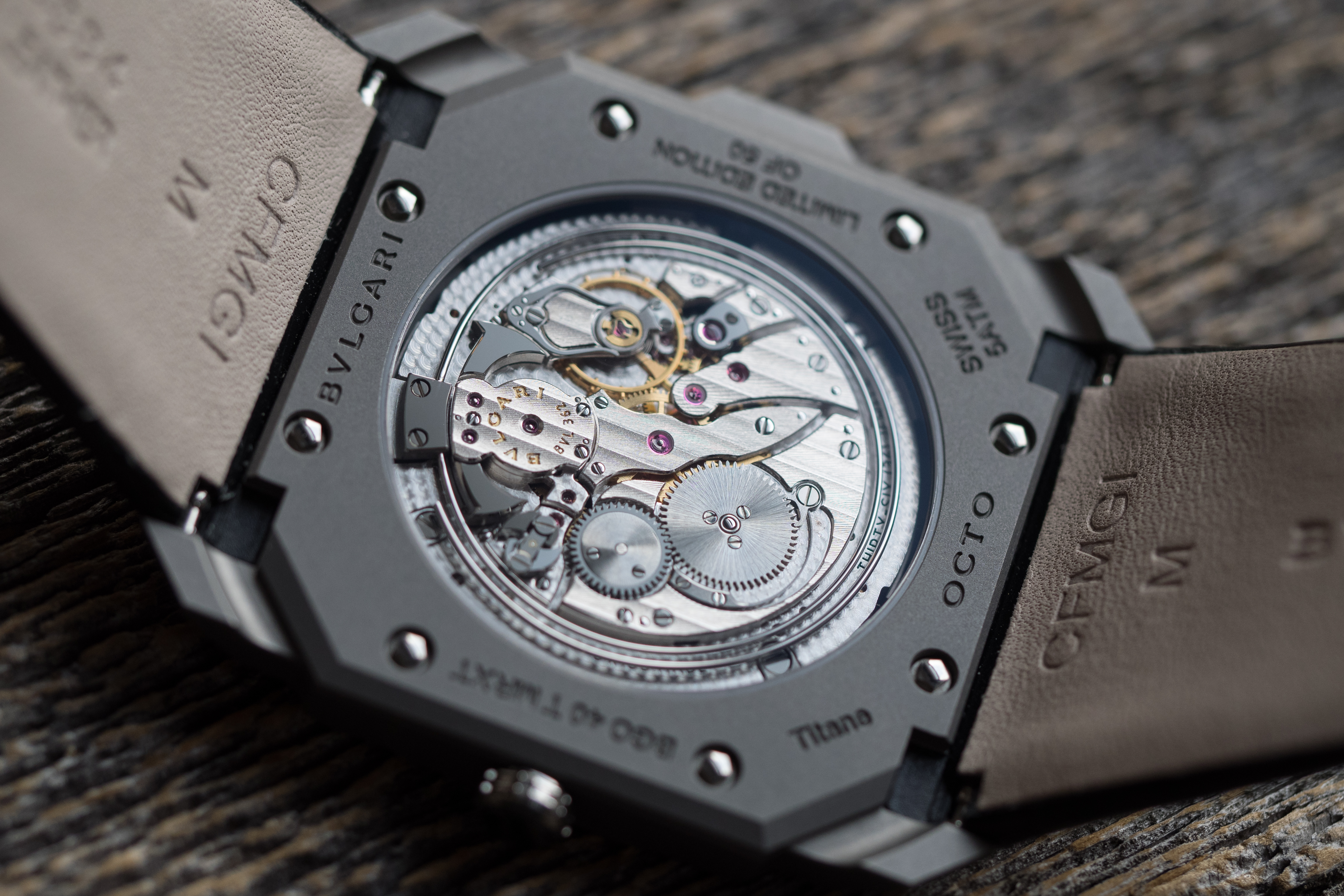 ミニッツリピーターを見るのはいい。聞くのも良い。ミニッツリピーターを聞きながら見ることは、また全く別の体験だ。オーデマ ピゲがスーパーソヌリを製作する際に取ったアプローチは、音響特性を重視したものだった。一方、ブルガリがオクト フィニッシモ ミニッツリピーターを製作する際に選択したのは、特徴的な形状を追求しながらも、その制約の中で可能な限りのことを行い、非常に伝統的に構築されたムーブメントの成す音質を重視したものだった。
