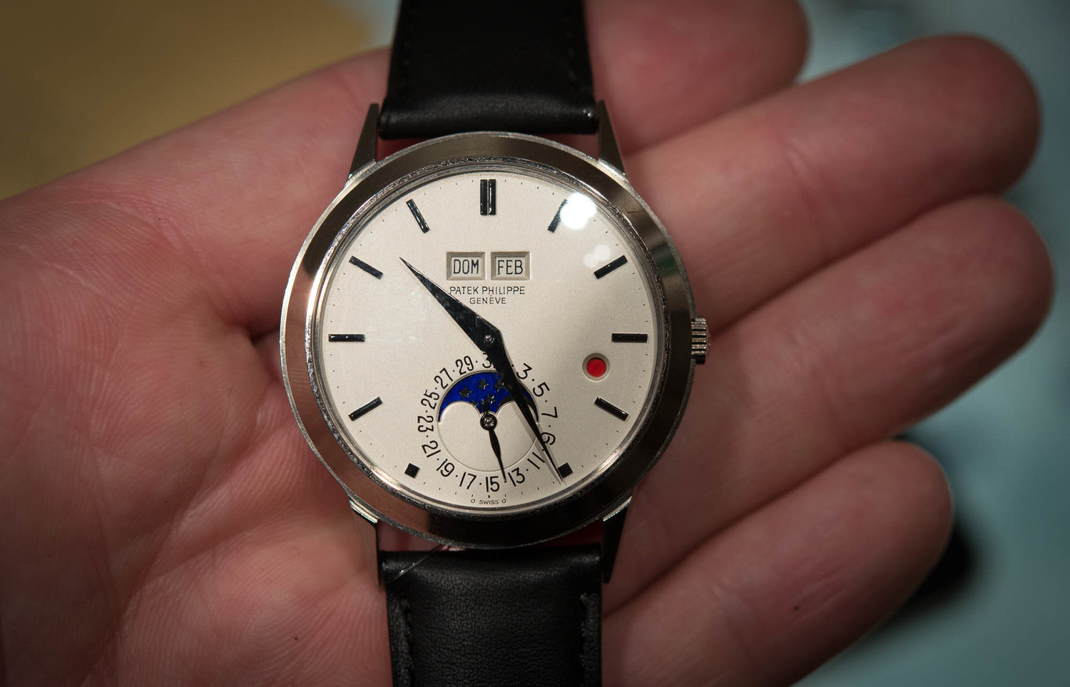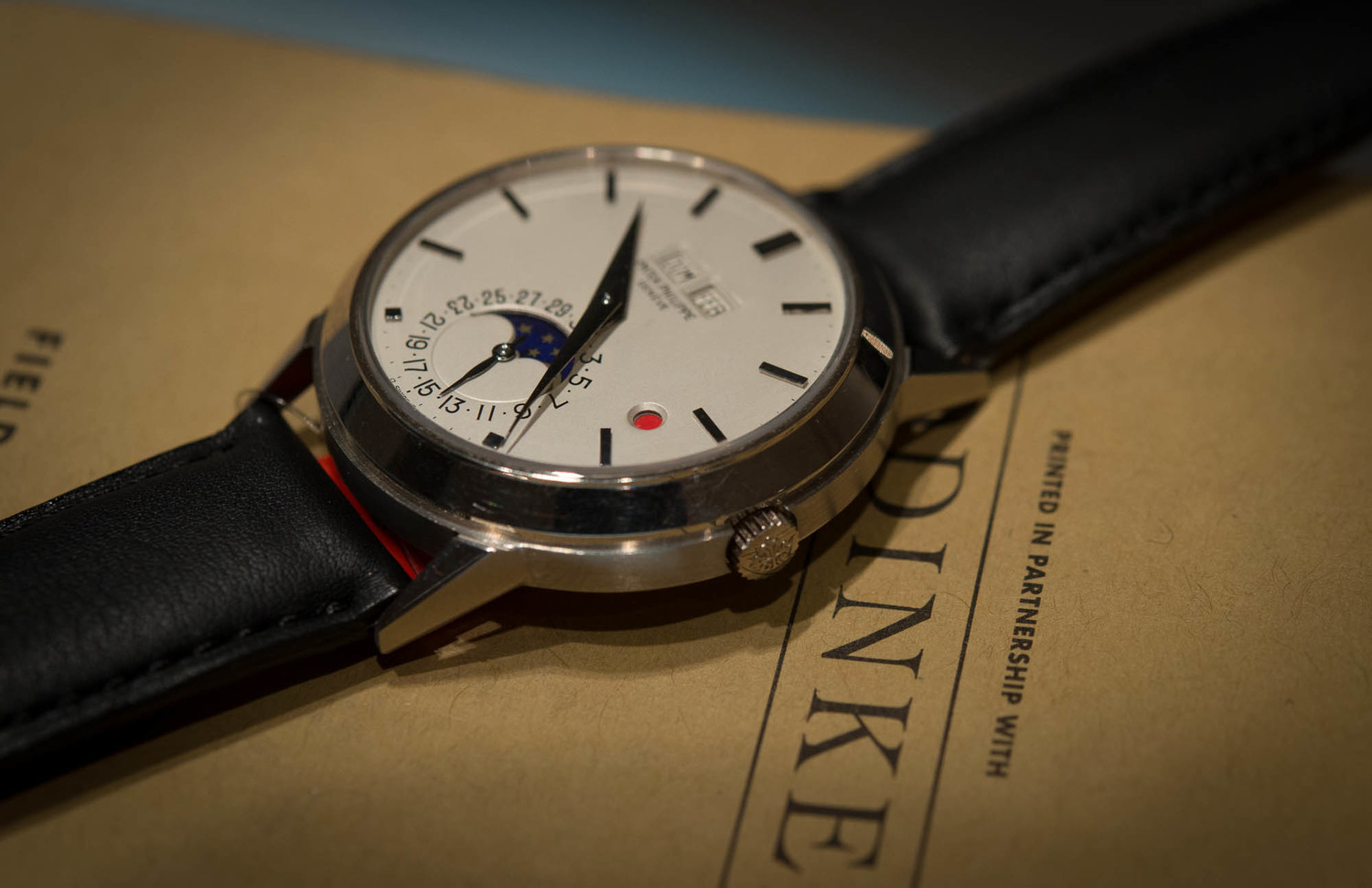 まず、タイトルを飾る3本のうちの1つは、パテック フィリップのリファレンス3448だ。 3448は同社初の自動巻き永久カレンダーであり、私の考えでは、最もクールで使い勝手の良いメガヴィンテージ・パテックの一つだ。 もちろん、私は古い手巻きクロノグラフ、手巻きの永久カレンダー、そして重要な1518や完璧な2499のような手巻きの永久カレンダー・クロノグラフを愛好するが、毎日、毎日、自分では手巻きの永久カレンダーを身に着けたいと思うだろうか? 私はそうしたいが、それは他の多くの人と違ってつまらない時計学的な純粋さが好きだからであるし、いままで1518、2499、3970、5970、5270を長時間身に着ける機会がなかったからでもある。