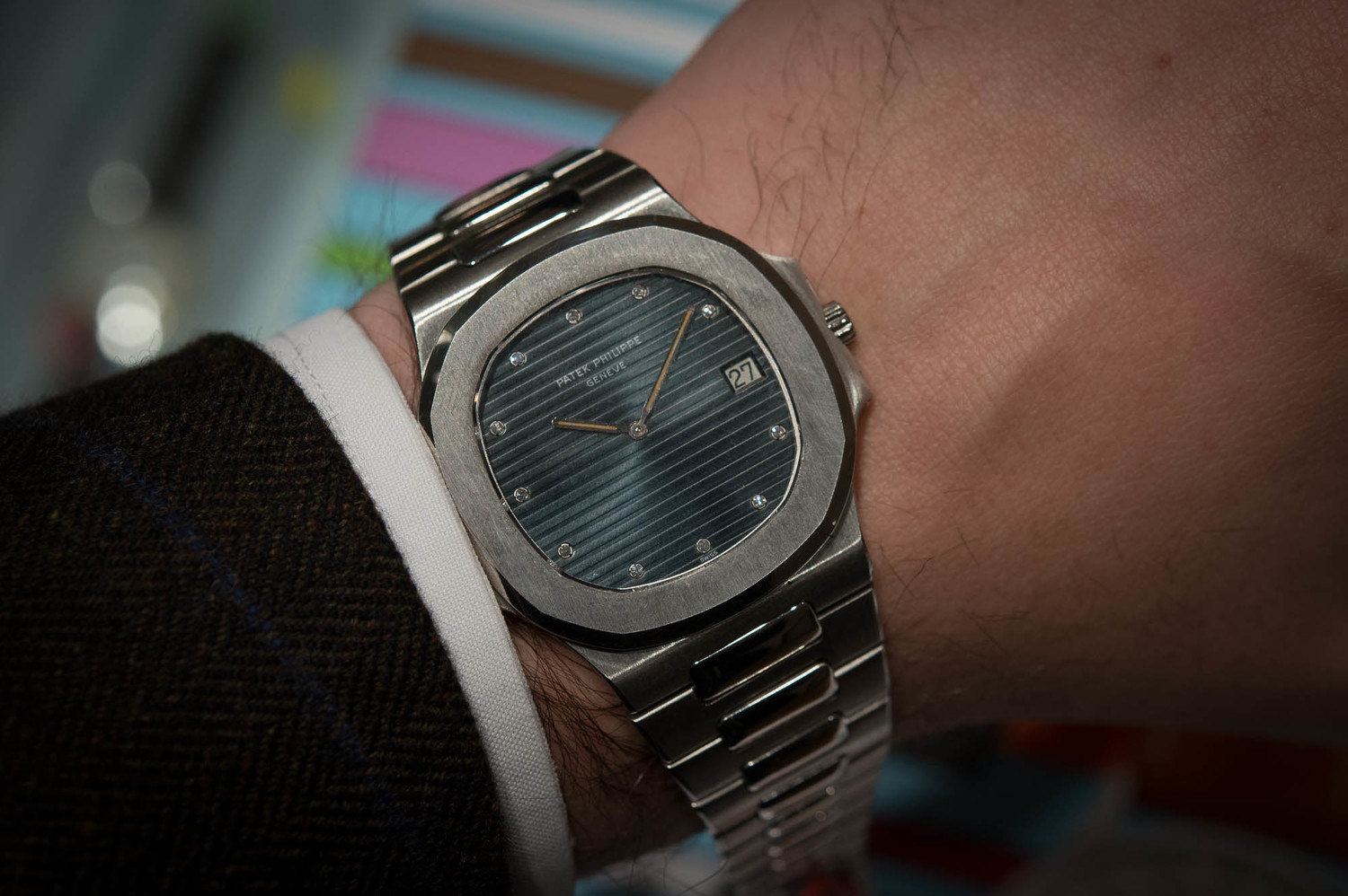 次はまたパテックで、目玉商品だ。 今回は有名なノーチラスのリファレンス3700。ジェラルド・ジェンタ(Gerald Genta )がデザインしたことで知られている。この時計はステンレススティール製が人気だが、少数のイエローゴールドモデルもあり、さらに希少なホワイトゴールドもある。 しかし、このノーチラスは、プラチナ製の3700として知られているただ一つのモデルだ。 非常に重く、文字盤にはダイヤモンドのミニッツマーカー(確かに最も男性的なタッチではないが)を備えているが、この時計はモンスターだ。これがどんなに凄いか手にすると分かる。 ノーチラスは高級時計の中で今でも最も優れたスポーツウォッチの一つだが、このプラチナ製のものは他と比べ物にならない。 推定価格は30万~50万スイスフランで、詳細はこちらだ。