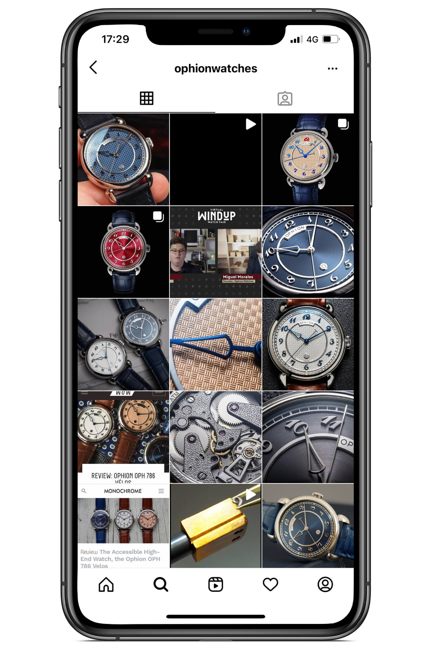 オフィオンのInstagramアカウントの画面。今や多くの時計ブランドがエンドユーザーとダイレクトにコミュニケーションを取っている。時計ブランドとの初めての接点がInstagramという人も少なくないのではないだろうか。