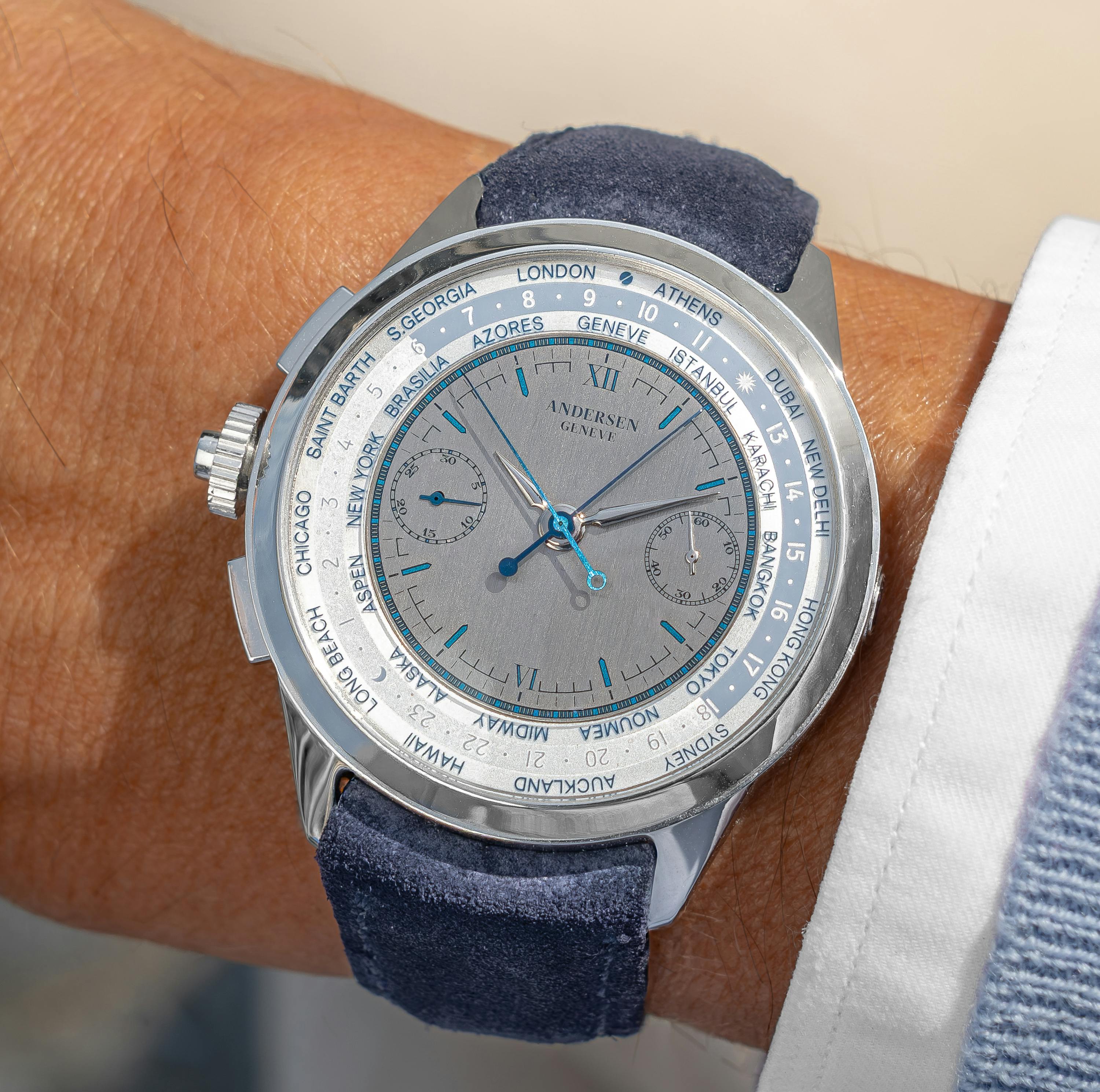 アンデルセン・ジュネーブの歴史についてこれ以上詳しく述べることはしない。というのも、過去に何度か取り上げているからだ。現行マガジンのマークの記事に加え、アーサーは2016年までに作られたすべてのワールドタイマーを取り上げているし、ローガンは2022年にふたつのリューズを備えたワールドタイマーについて説得力のある記事を書いている。さて、話を新しいラトラパンテ モンディアルに戻そう。この時計は最高なのだ。