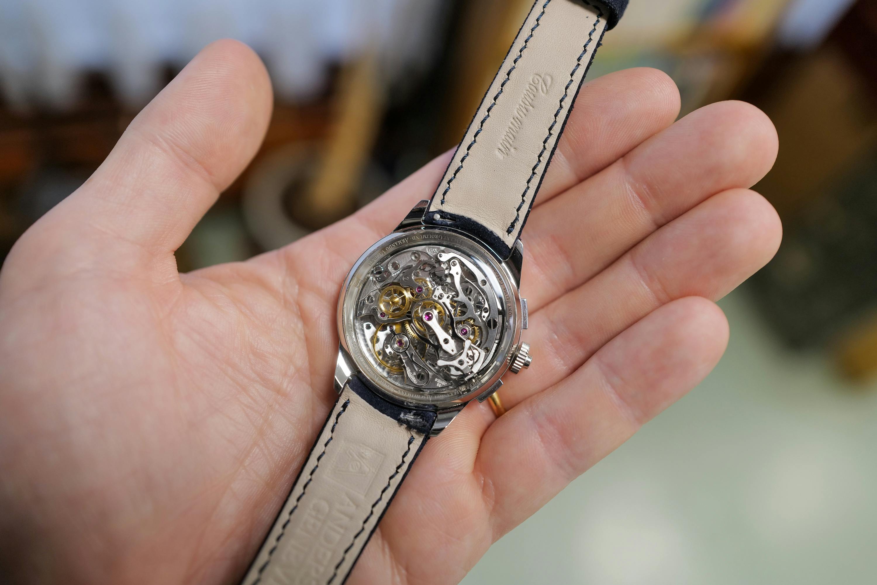 前述のとおり、GPHGのリストでこの時計を見たときに私が本当に驚いたのは、ふたつの複雑機構が組み合わされていることだけでなく、それを比較的小さく薄いケースに収めることができたという点だ。はっきり言うと、ランゲの1815 ラトラパントやパテックのRef.5370の両方よりも小さく薄い。どうやってそれを実現したのか? それこそがアンデルセン・ジュネーブの精神の一部なのだ。彼らはムーブメントメーカーではなく、コンプリケーションメーカーなのである。彼らが現在、そして過去に製造したワールドタイマーのほとんどを見れば、それらがフレデリック・ピゲやそのほかの有名なエボーシュをベースにしていることが多いのがわかるだろう。