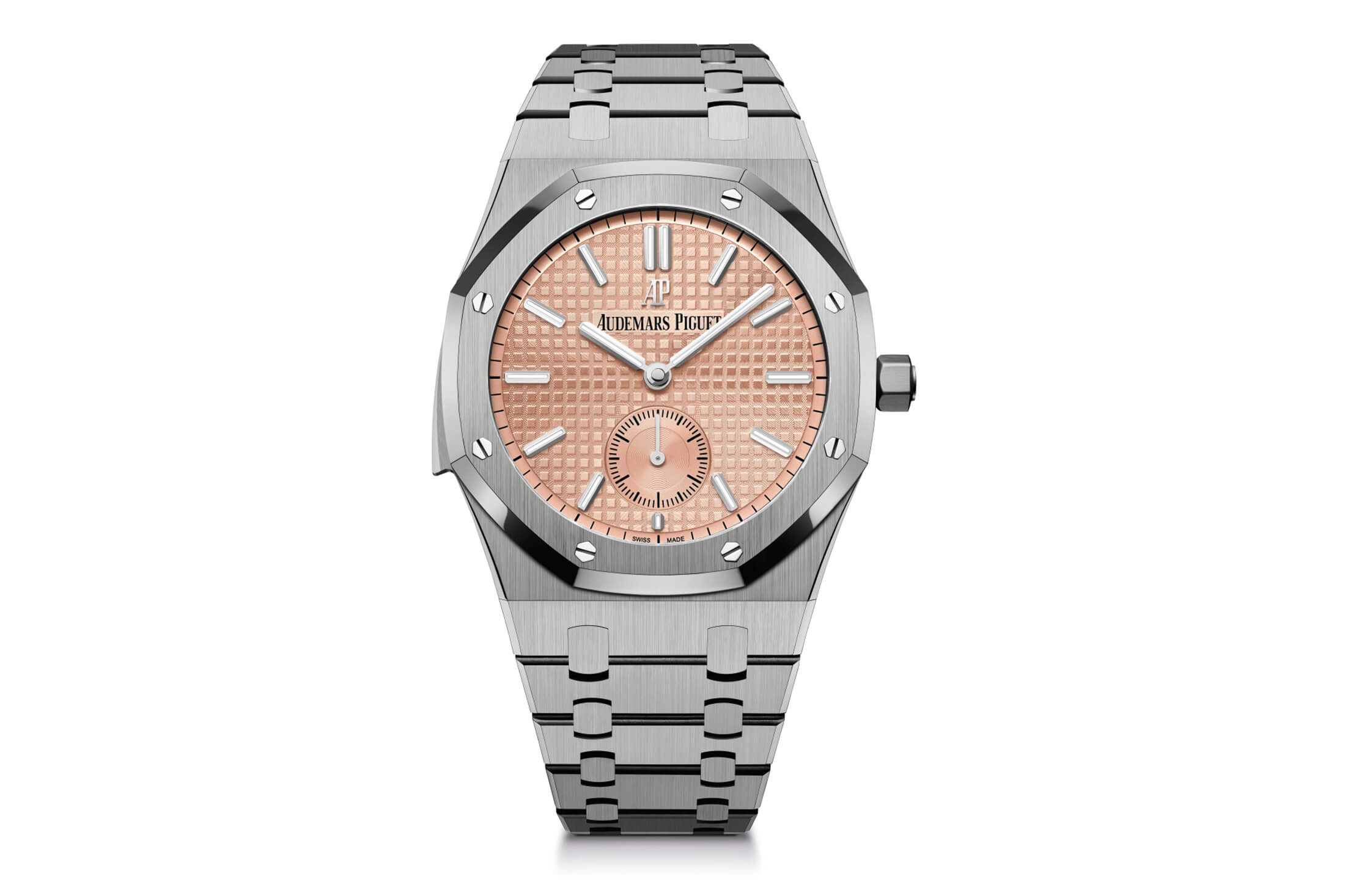 2018年に初めて登場した、ロイヤル オーク ミニッツリピーター スーパーソヌリに、サーモンピンクダイヤルが日本ブティック限定モデルとして発売された。