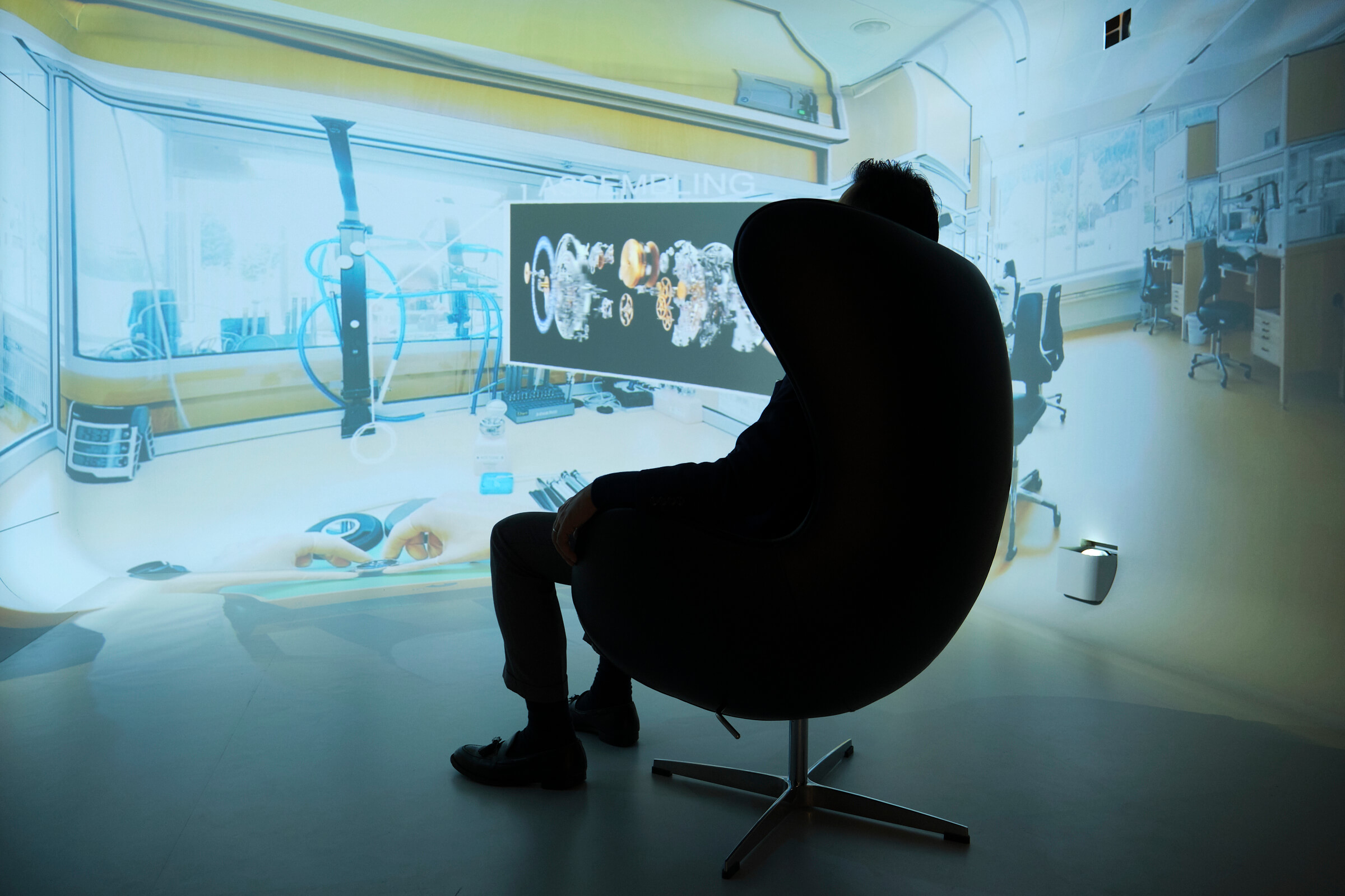 オーデマ ピゲ ブティック 銀座の地下1階では、本社CEOやスタッフがCODE 11. 59の製作工程などの解説を行う360°プロジェクションマッピングの映像を鑑賞できる。