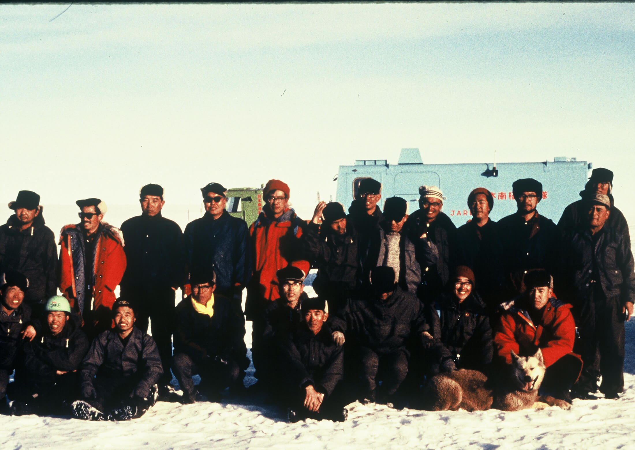 第8次南極観測隊の集合写真。隊員全員がセイコー ファーストダイバー、62MASを着用したとされている。画像:国立極地研究所