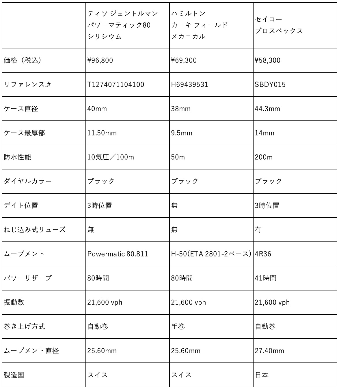 ティソ ジェントルマン パワーマティック80 シリコンについて;セイコー プロスペックス SBDY015について;ハミルトン カーキ フィールド メカニカルについて