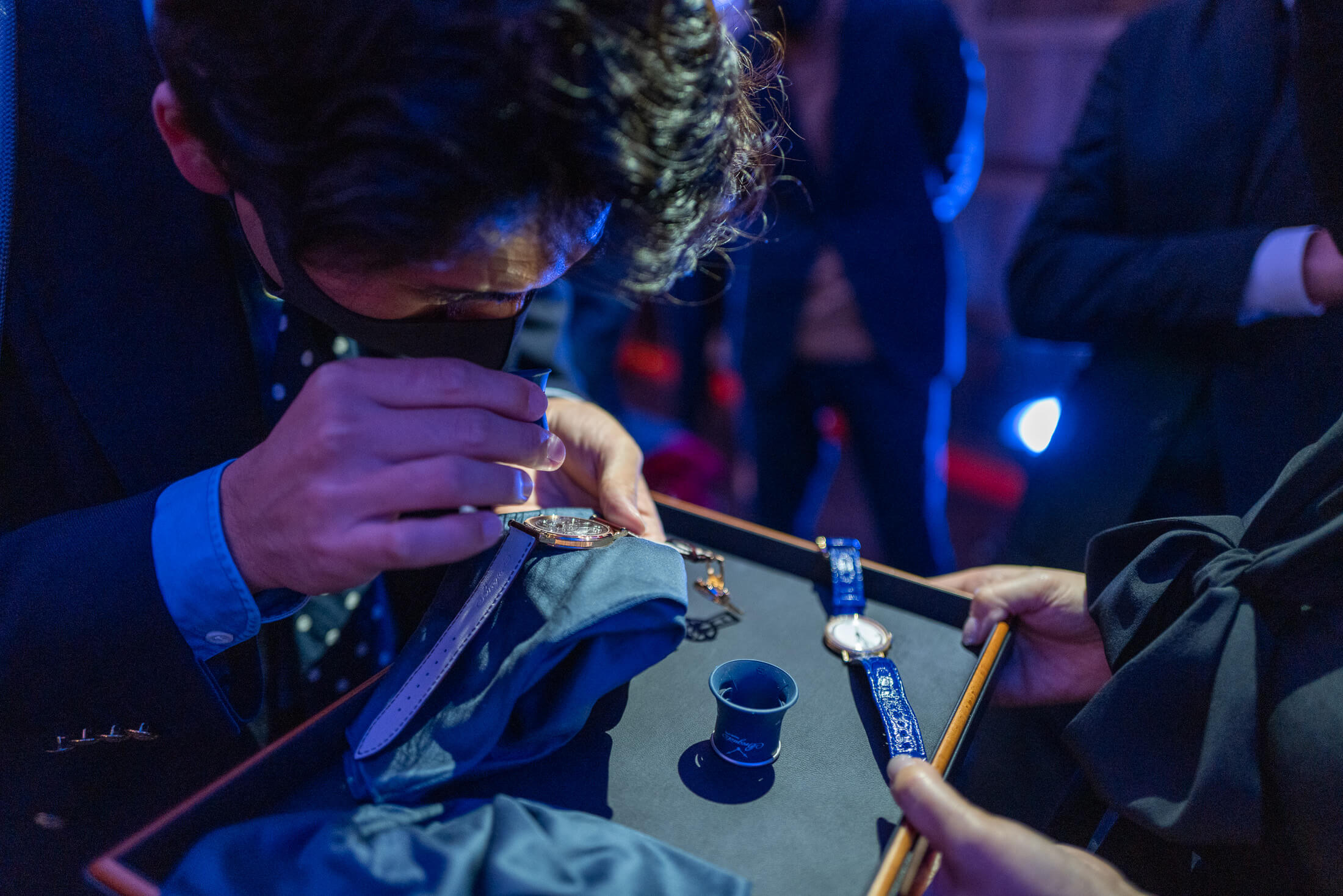 ほかにも会場では、2015年に最年少38歳でフランス人間国宝に認定された扇作家のシルヴァン・ル・グエン氏が登場。ブレゲのトゥールビヨンをテーマにした新作で、同機構が持つ立体感や透明感、そしてブレゲの時計に用いられるマザーオブパールといった素材などが取り入れられた扇も発表されました。ブレゲは、トゥールビヨンだけでなくブレゲ数字、ブレゲ針やギヨシェといったデザイン意匠を発明するなど常に時計における美しさを追求してきたブランドでもあります。今回のコラボレーションはそんなブレゲらしいものとなったのではないでしょうか。なお、この作品は11月以降、ブレゲ直営の4ブティックにて巡回展示する予定です。