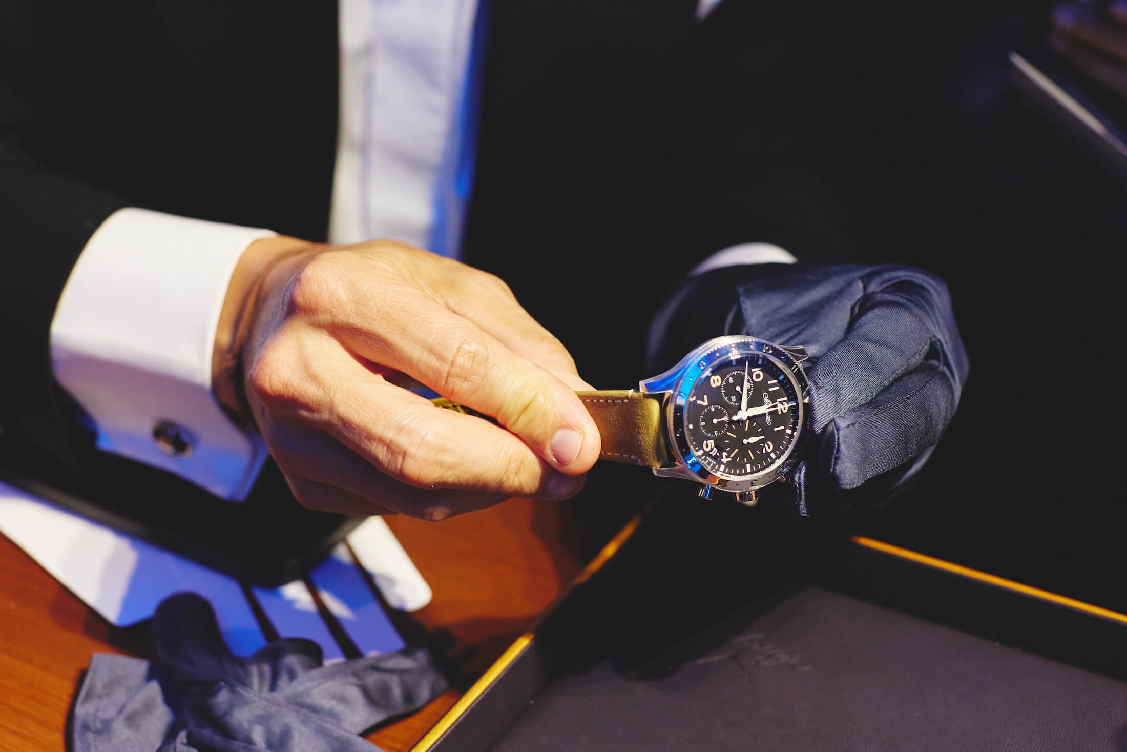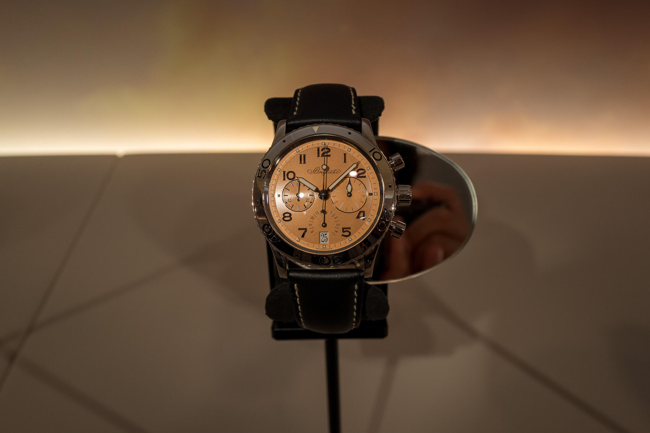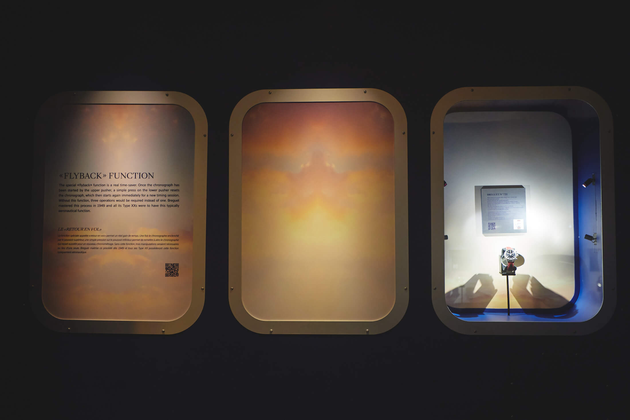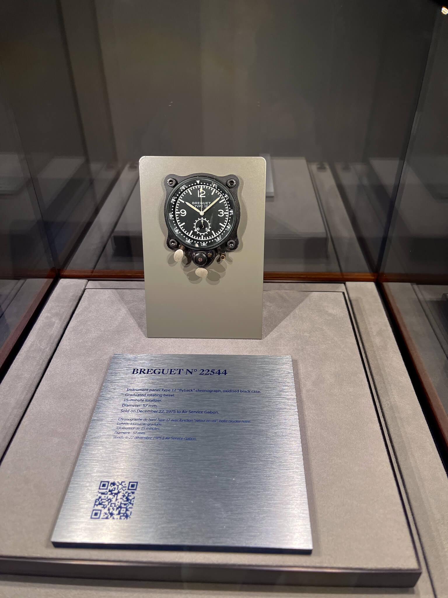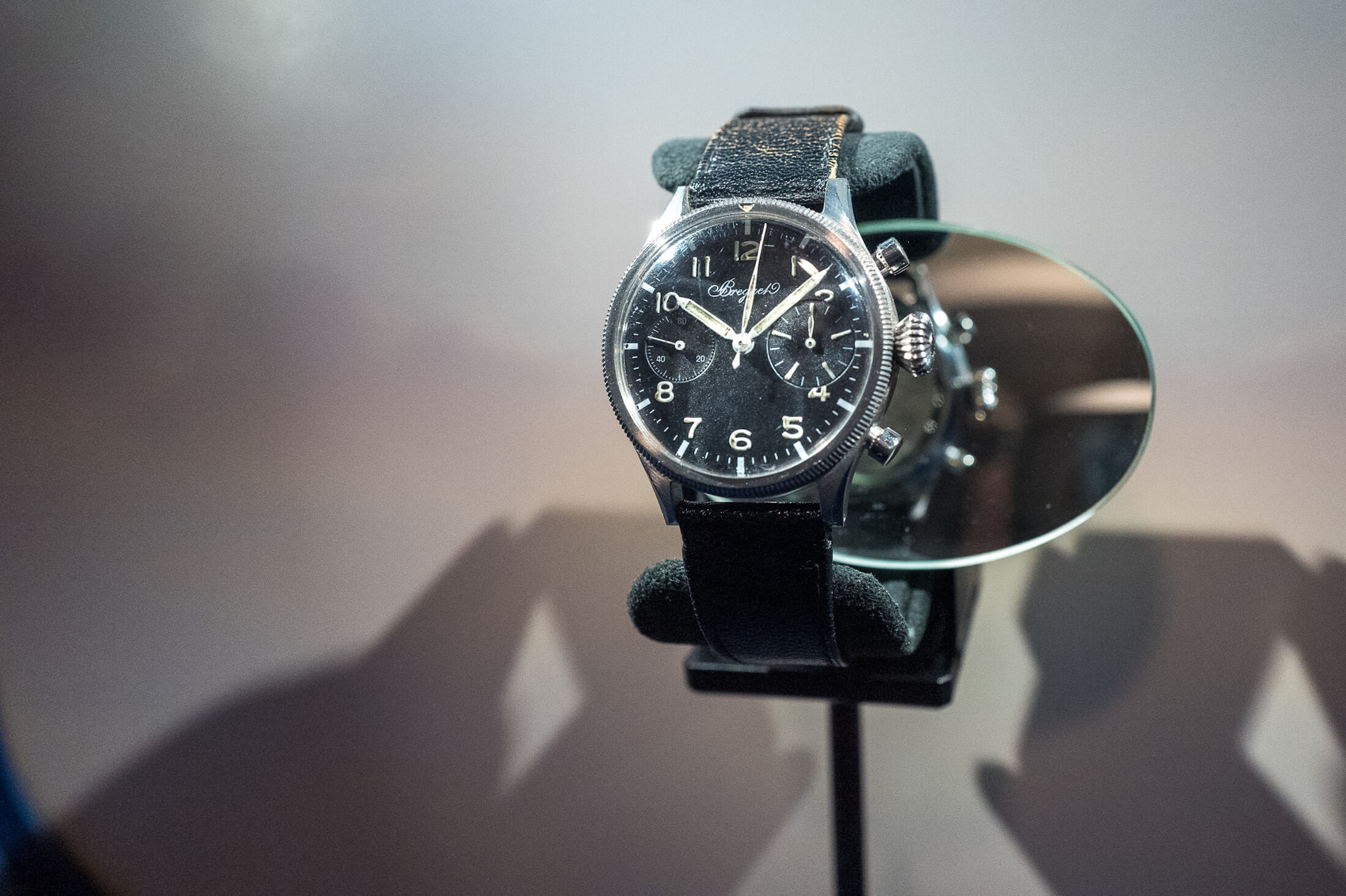 今回ル・ブルジェ博物館で見ることができたのは、新作のみならず第1〜3世代のタイプ 20/XXだ。積算計の計測時間が15分、30分と異なるツーカウンターのもの、3カウンター仕様になり回転ベゼルも追加されたものなど様々な仕様のものがあり、数年単位で技術が進歩していった様子がうかがえた。ブレゲは当時、腕時計とコックピットクロックの両方を製造し、1900年代初頭にはパイロットウォッチを製造しており、1930年代まで戦火のなかで軍への納入を続けた。ブレゲ一族が創業した時計製造会社は1954年にフランス海軍航空隊(Aéronavale)への正式サプライヤーとなり、それ以降にタイプ 20/XXという名の腕時計が製造され始める。軍からの要求により、すべての時計がフライバッククロノグラフと積算計、回転ベゼルを備えることとなった。