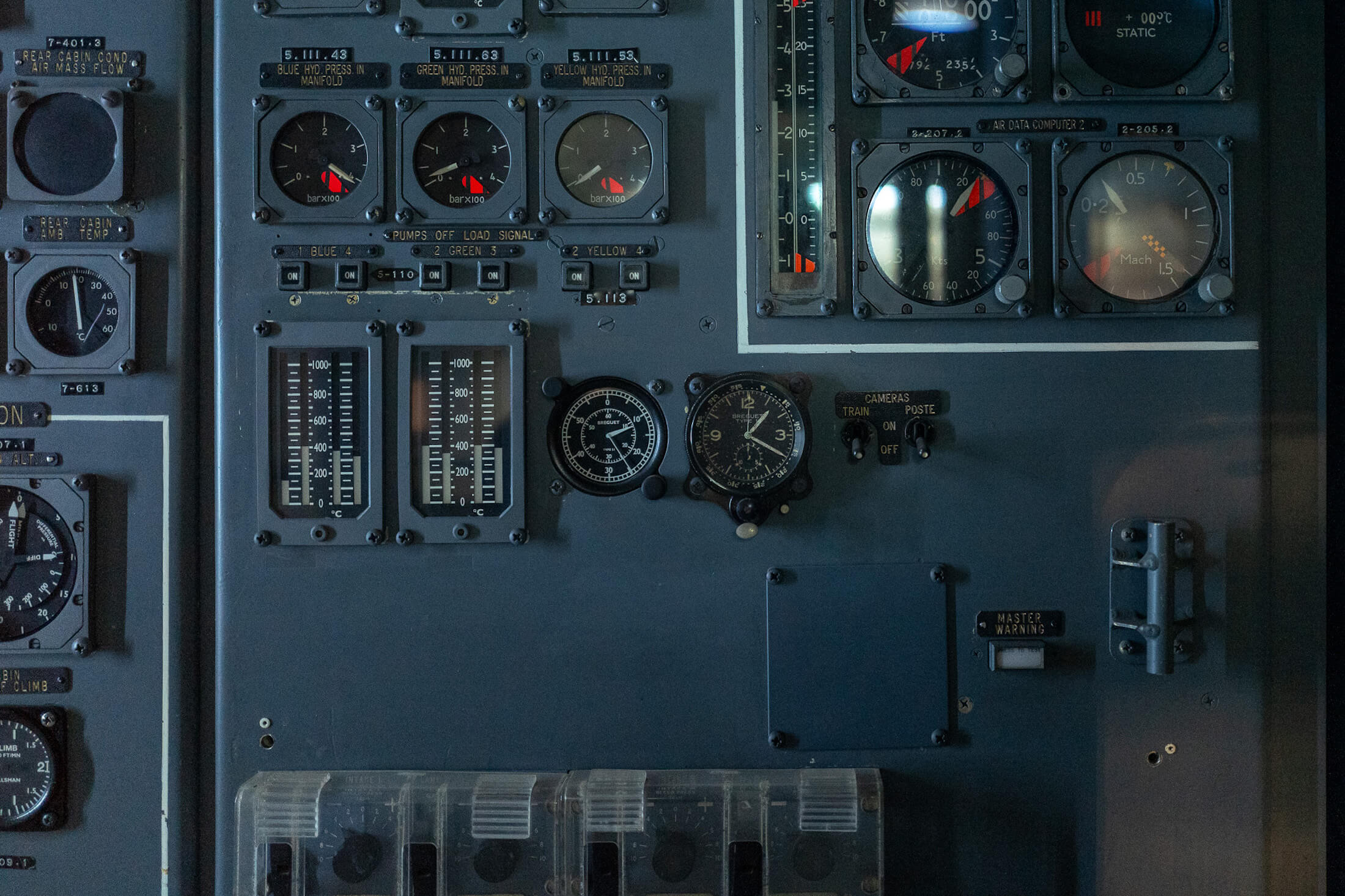 コンコルドの計器類。中央にブレゲのロゴが入った計器がふたつ確認できる。