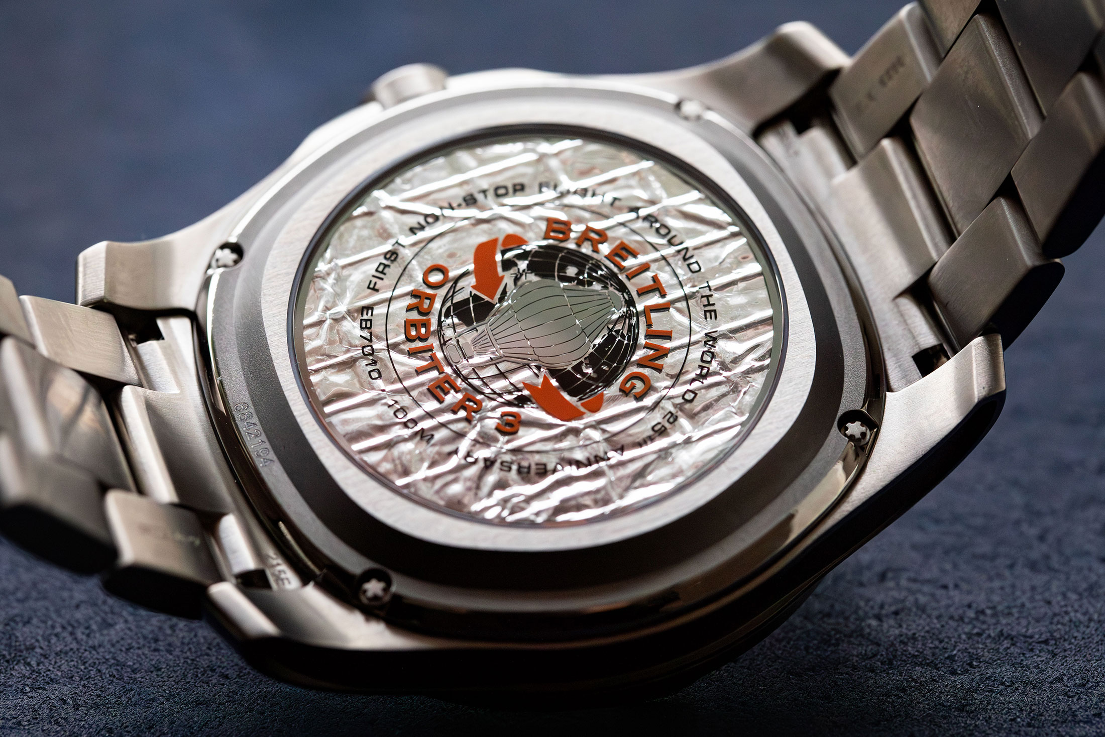ブライトリングは2019年にもオービター3の無着陸世界一周飛行の20周年記念モデルを発表しているが、今作ではケースバックをトランスパレント化し、オリジナルのオービター3の一部を封入することでさらに特別感を高めている。また、クリスタルには1999年の冒険のミッションロゴと、その周囲に“Firstnon-stop flight around the world 25th anniversary(初の無着陸世界一周飛行25周年)”が刻まれている。実際に歴史の一部を所有することができる貴重な仕様であり、(ブランドはこのモデルに限定数こそ設けていないものの)この機会を逃せば二度と手に入れることはできないだろう。