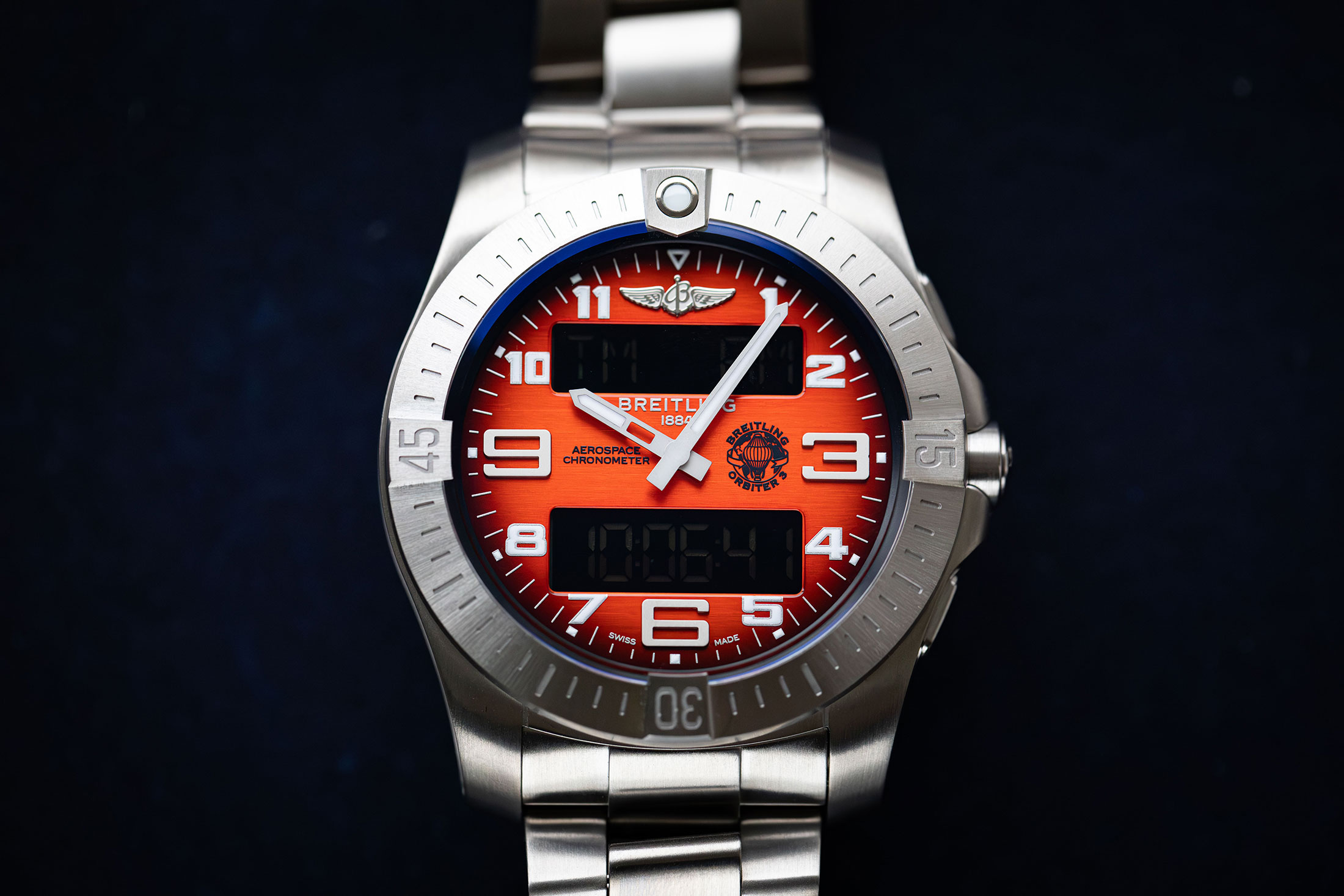 2024年は、1884年創業のブライトリングにとって140周年にあたる記念すべき年だ。このアニバーサリーイヤーに合わせ、ブライトリングは一年をとおしてブランドの歴史に燦然と輝く“初挑戦の数々”を伝えていく予定だと語っている。そしてその鏑矢(こうし)として3月に放たれたのが、ブランドの“空”の分野における偉業を称えるエアロスペースの新作、エアロスペース B70 オービターだ。