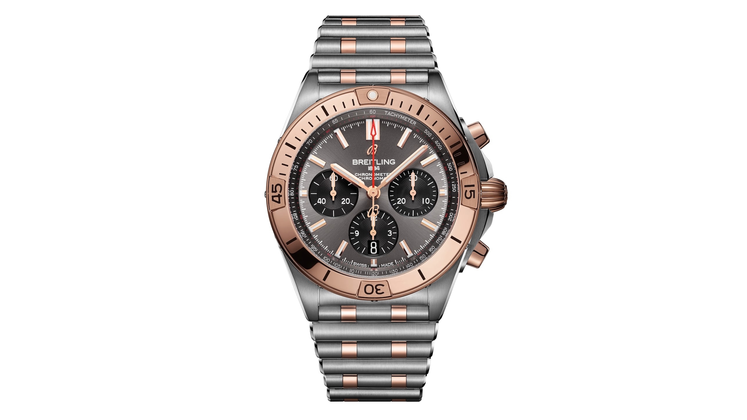 スティールと18KRGのライダータブやリューズとのコンビネーションが美しい。SS×18KRGケース。