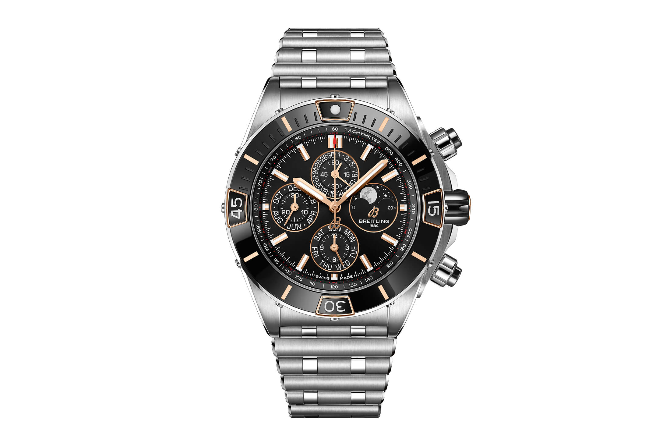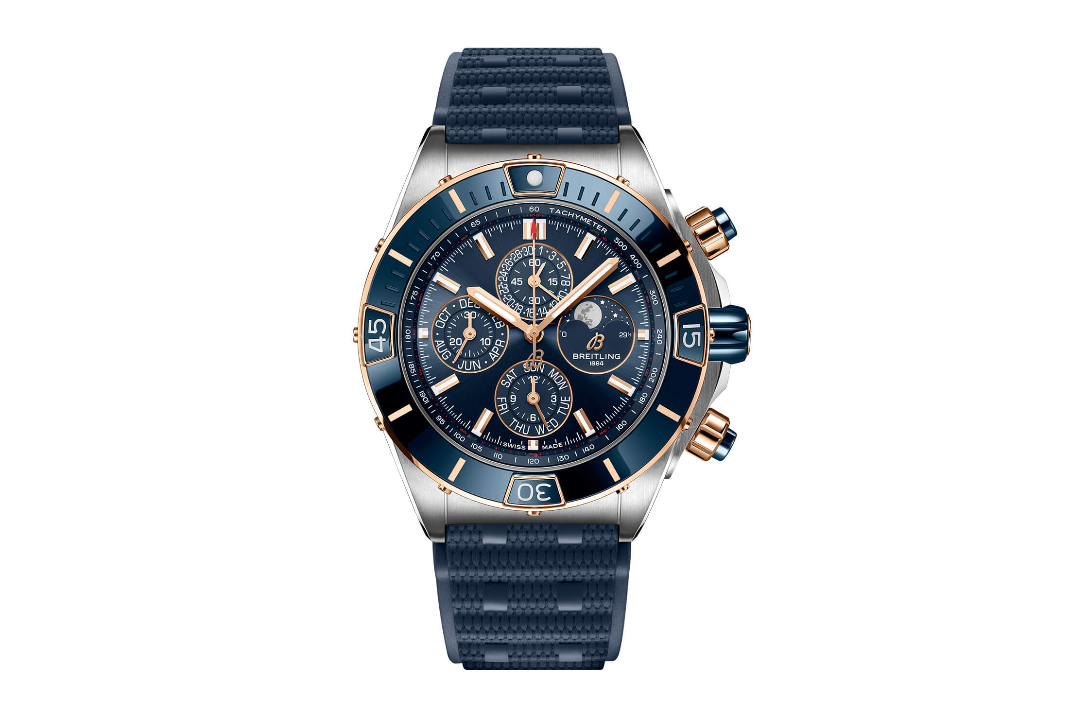 しかも今なら、新作のスーパー クロノマットのみならず、「クロノマット JSP」や「クロノマット B01 42」といった人気モデルもフルラインナップされている。とりわけクロノマット JSPが購入できるのは今夏限りとなっているので、この機会に注目モデルの数々を着け比べ、自身にとって最良の1本を手に入れて欲しい。