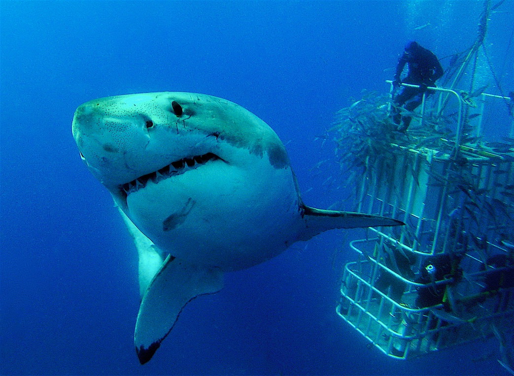メキシコの太平洋側に浮かぶグアダルーペ島沖のホホジロザメ。