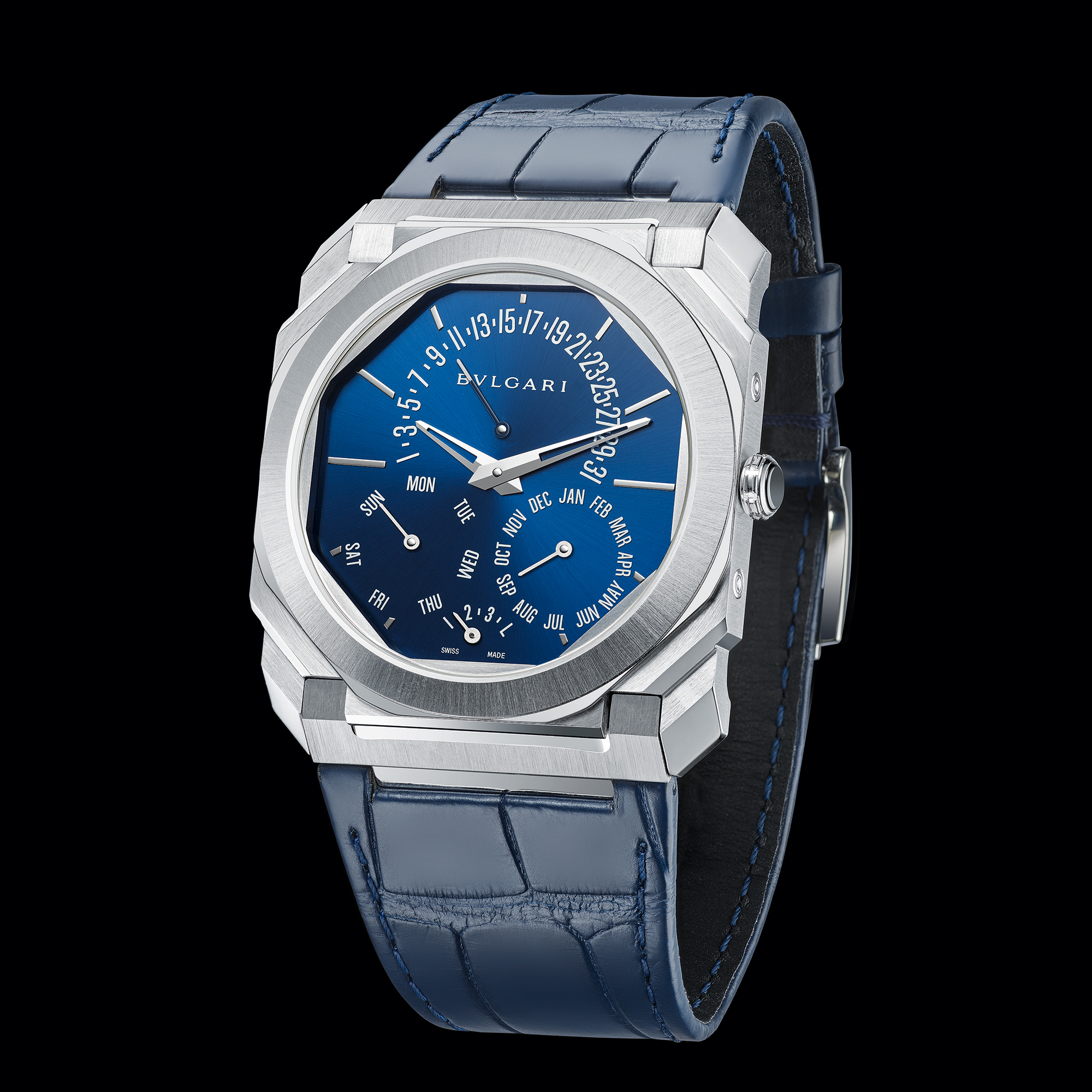 プラチナ製のオクト フィニッシモ パーペチュアル カレンダー。