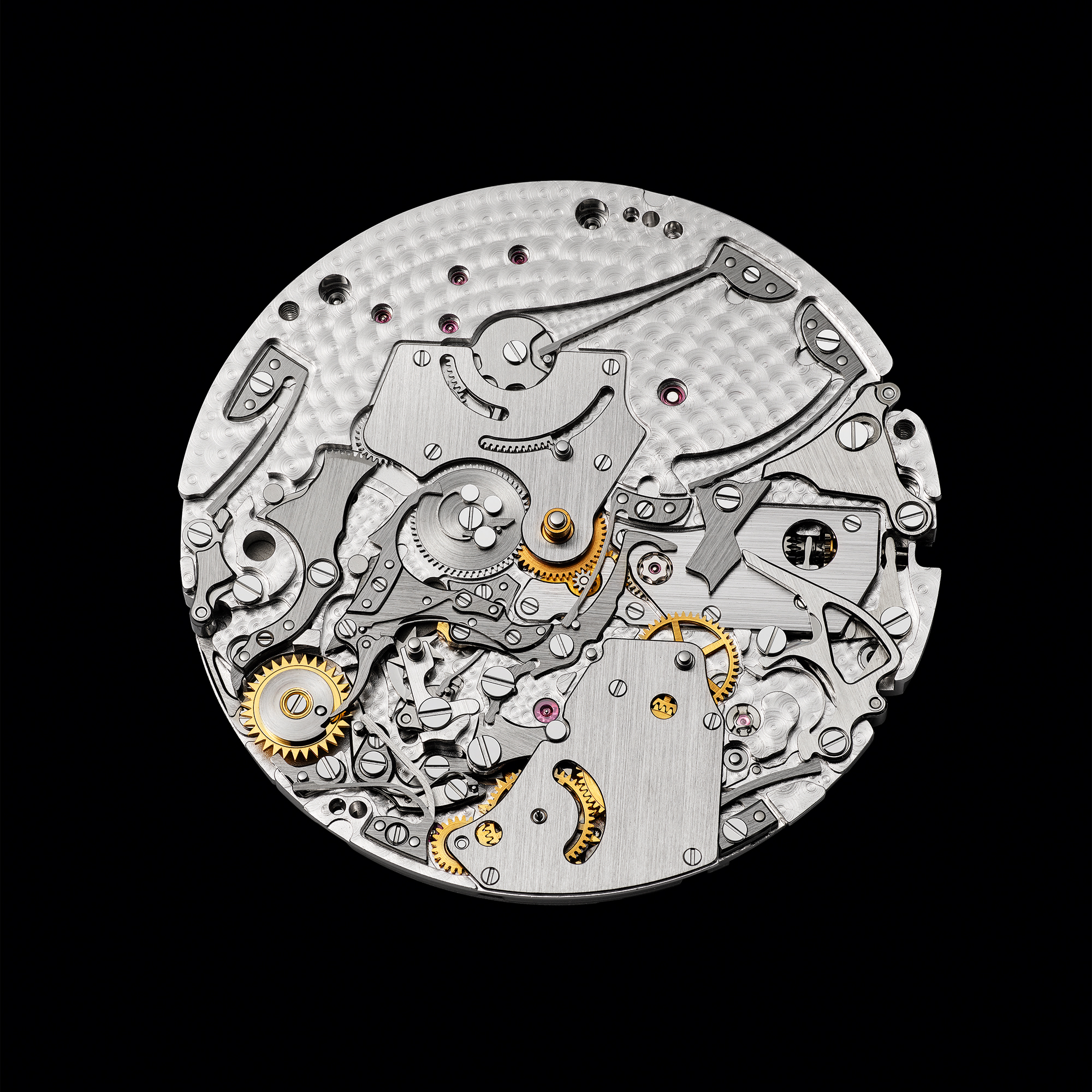 スペースは非常に効率的に使用されおり、パーペチュアルカレンダーは全てプレートと同じ平面上に配置され、プレートの窪みにはめ込まれている。また、ムーブメントの反対側にある自動巻きローター、自動巻き輪列、駆動輪列、そしてテンプもほぼ同じ平面上に配置されている。