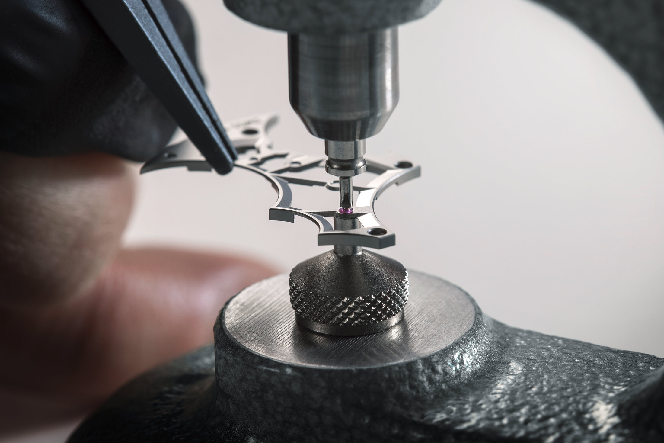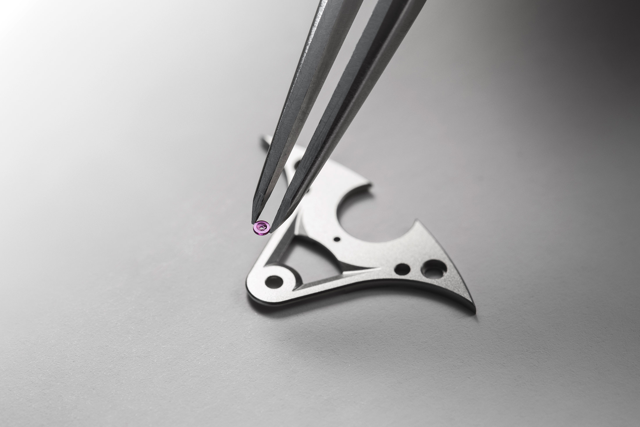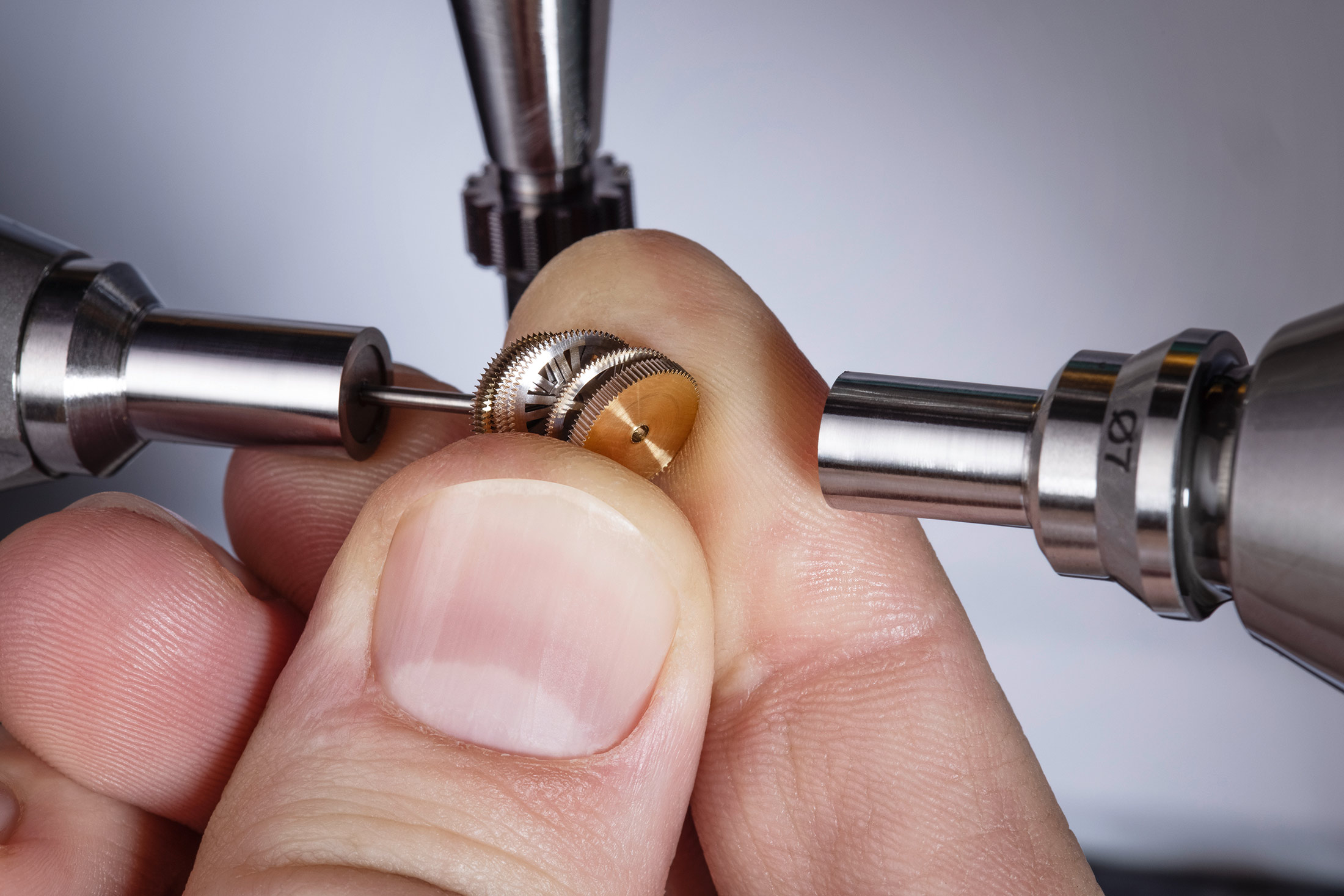 QRコードは、ゼンマイバレルのラチェットホイールにレーザー刻印されている。