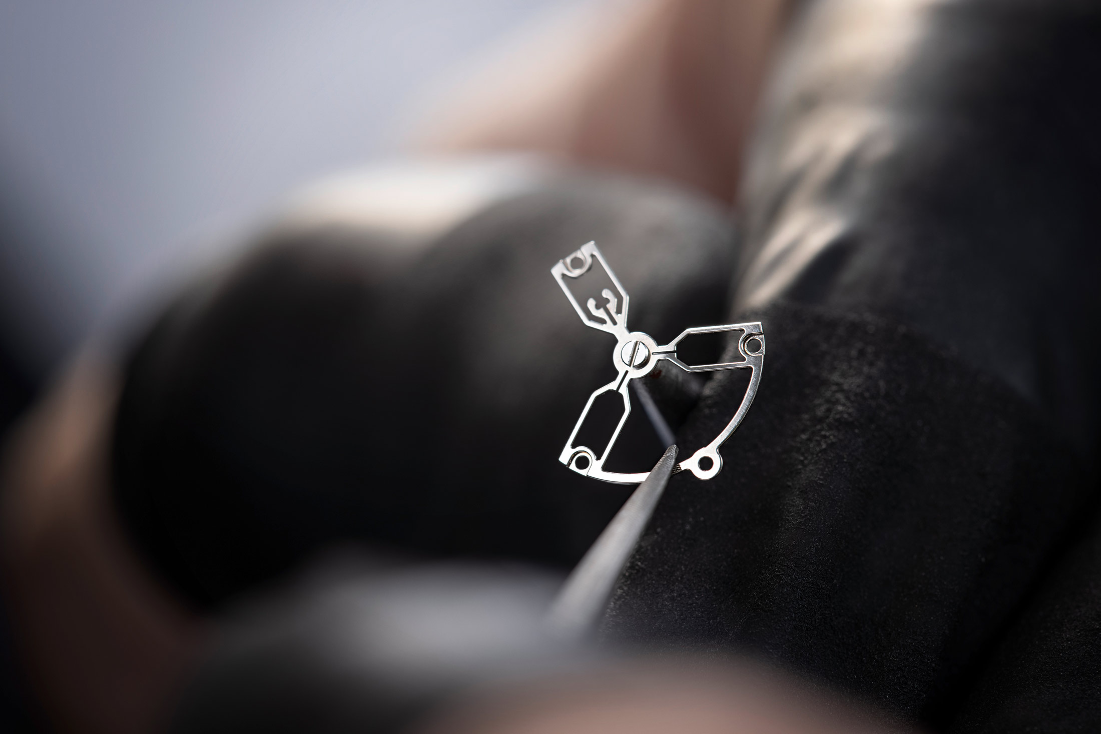 テンプには板バネを採用(ブレゲオーバーコイルはクロノメーターや工芸品の観点からは好ましいが、厚みがでるためこうした超薄型時計には原則的に採用されない)。テンプの微調整は、アジャスタブルリムウェイトによって行われる。テンプはみっつのアームからなるテンプ受けの下で振動し、ヒゲゼンマイの内端カーブのためのスタッドホルダーが内蔵されている。このブリッジは、通常の4石(ふたつの軸受けとキャップジュエル[蓋石])とショックスプリングに代わって、テンプの耐震システムとしても機能するように設計されている。
