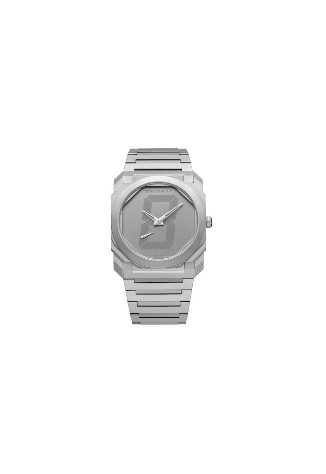 オクトの挑戦は、薄さの追求にとどまらない。時代を代表するアーティストやクリエイターと邂逅し、文化、芸術、音楽の領域をさらに越えていく。2021年には現代美術家の宮島達男さんとタッグを組み、コラボレーションモデルを発表した。オクト フィニッシモ オートマティックの文字盤に彫られたのは、宮島さんオリジナルの、オクトを象徴する8のデジタル数字。だが7つのセグメントからなるデジタル数字の8にはすべての数字が含まれており、無限の可能性を秘めている。それは時の深遠でもあるのだ。制作で対峙したオクトの印象について宮島さんはこう語る。