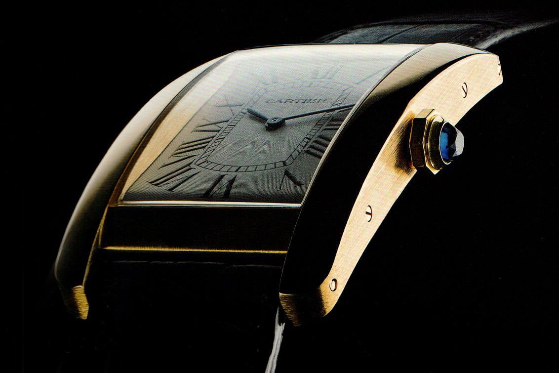 ドラマチックなカーブを描くケースが特徴の1924年製“タンク サントレ”。(写真:フランコ・コロニ著『Cartier The Tank Watch』より)
