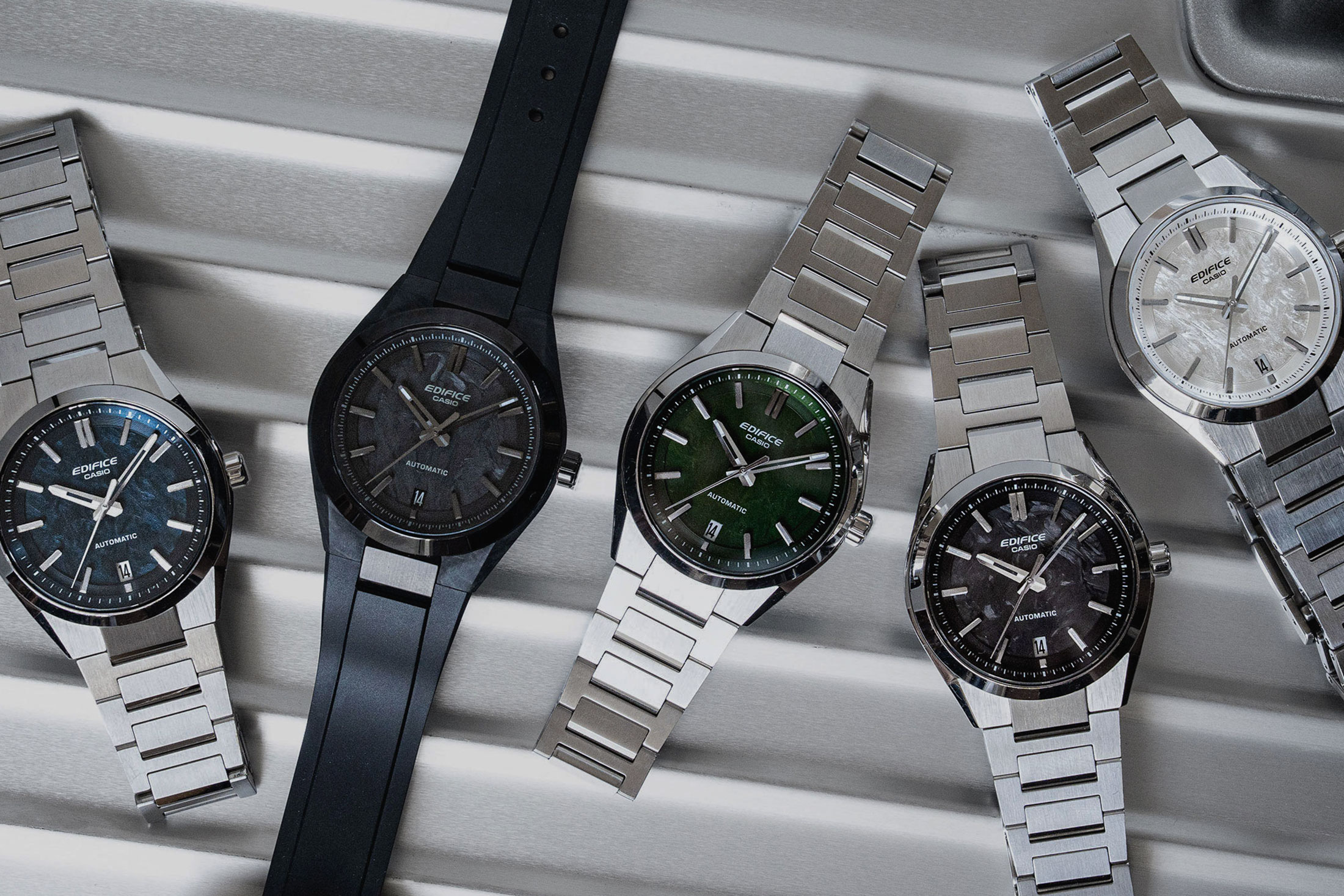 とりわけ腕時計を愛好する人にとって、そのニュースはサプライズであったに違いない。2025年7月にカシオブランドのひとつ、エディフィスから発売されたEFK-100XPB、EFK-100YCDは、カシオ製の腕時計では初となる自動巻きの機械式ムーブメントを搭載していたのだから。しかも、同ラインナップにおいて基幹モデルであるEFK-100XPB-1AJFとEFK-100YCD-1AJFにおいては、強靭さと軽さを兼備するフォージドカーボンを外装やダイヤルに採用。それでいて、従来のエディフィスと変わらない価格帯を実現したことで、強い注目を浴びた。
