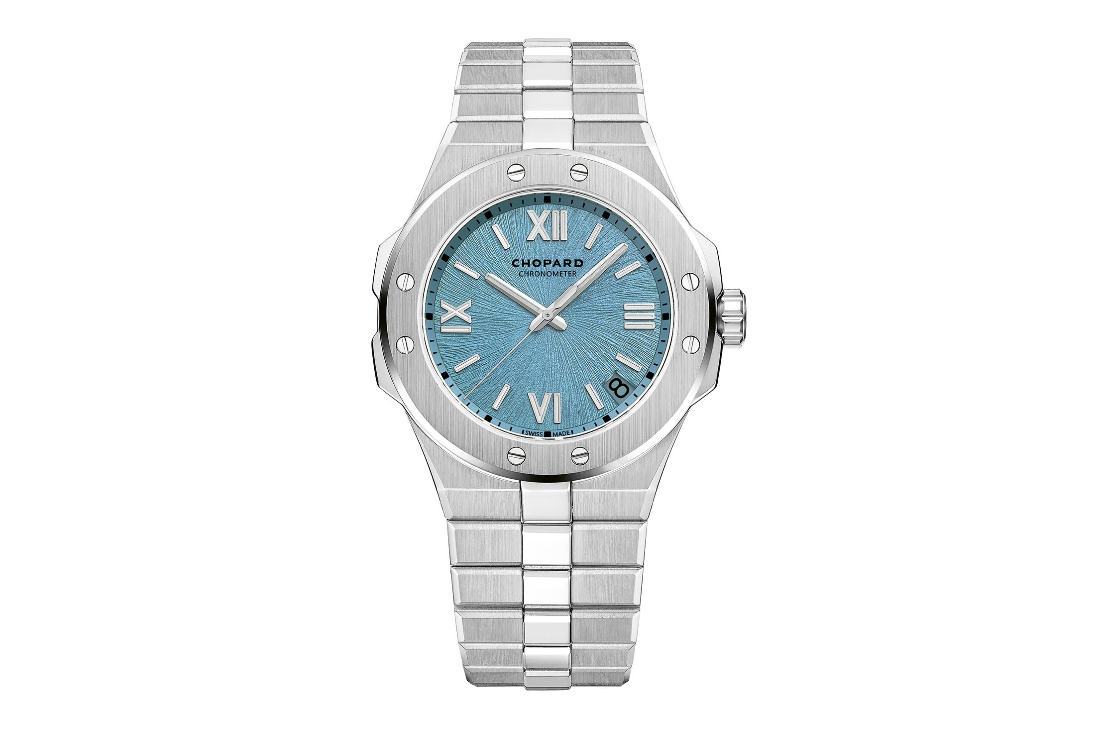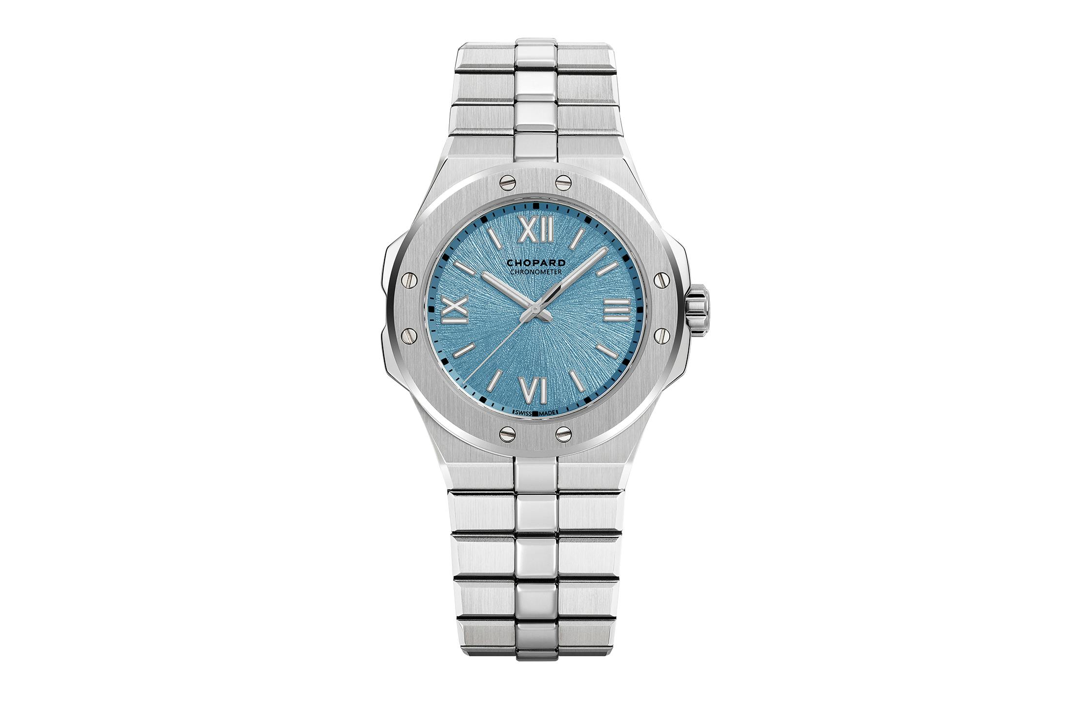 アルパイン イーグル ローヌブルーは、既存の41mmと36mm径のルーセントスティール™製ケースを持つアルパイン イーグルの基本設計を踏襲しつつ、両ケースサイズでは初の“ローヌブルー”ダイヤルを採用した新作だ。アルプスを流れるローヌ川に着想を得たという、自然の冷たさや透明感を感じさせる、より落ち着いたブルーの表現が“ローヌブルー”の特徴だという。