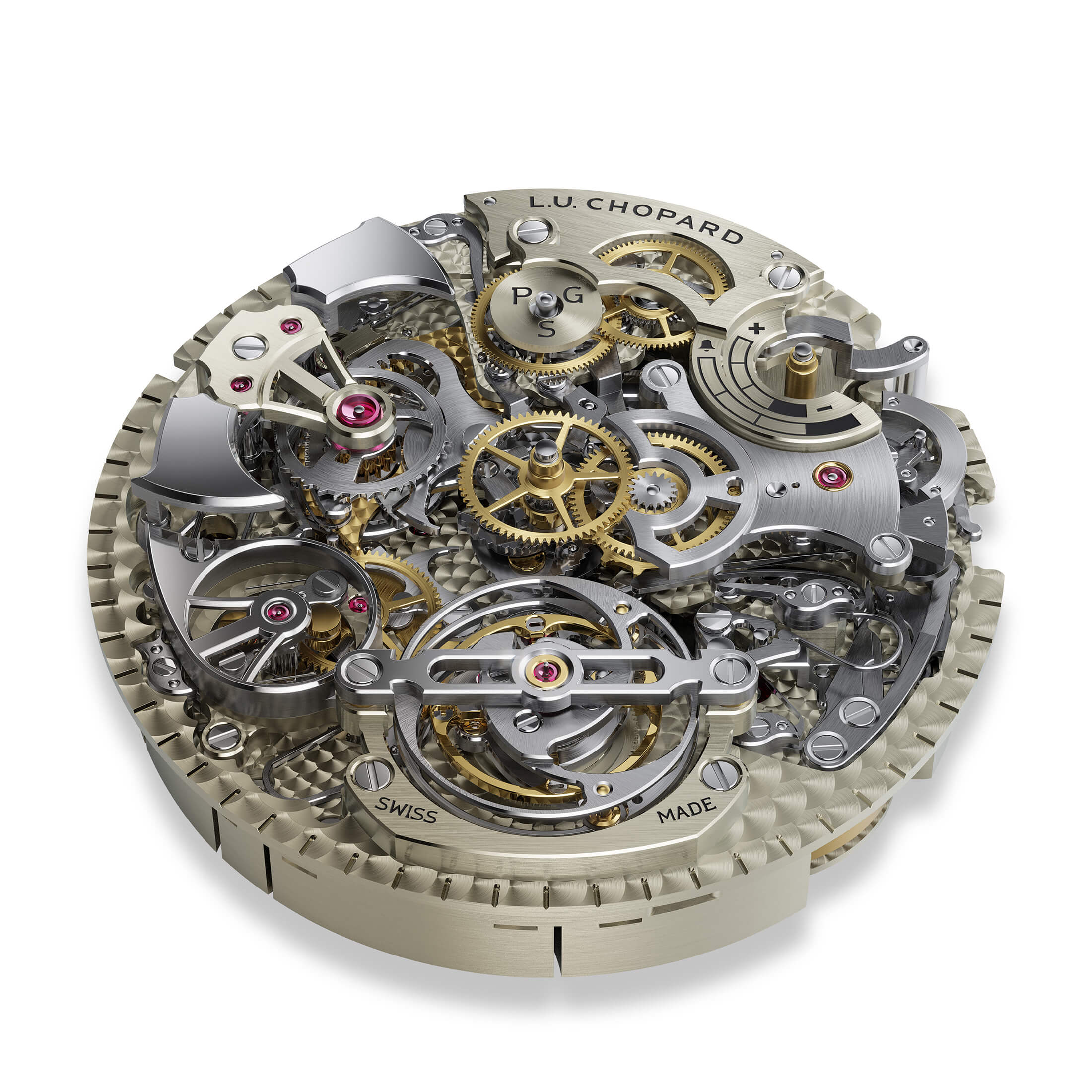 プレスリリースなかでショパールが、本作を“同メゾンの共同社長カール‐フリードリッヒ・ショイフレ氏が主導してきたソヌリ・リピーター開発の集大成”と位置付けているが、ソヌリ・リピーター開発に留まらず、L.U.Cコレクションの集大成と言っていいほど、本作にはこれまでに培った技術が惜しみなく投入されている。