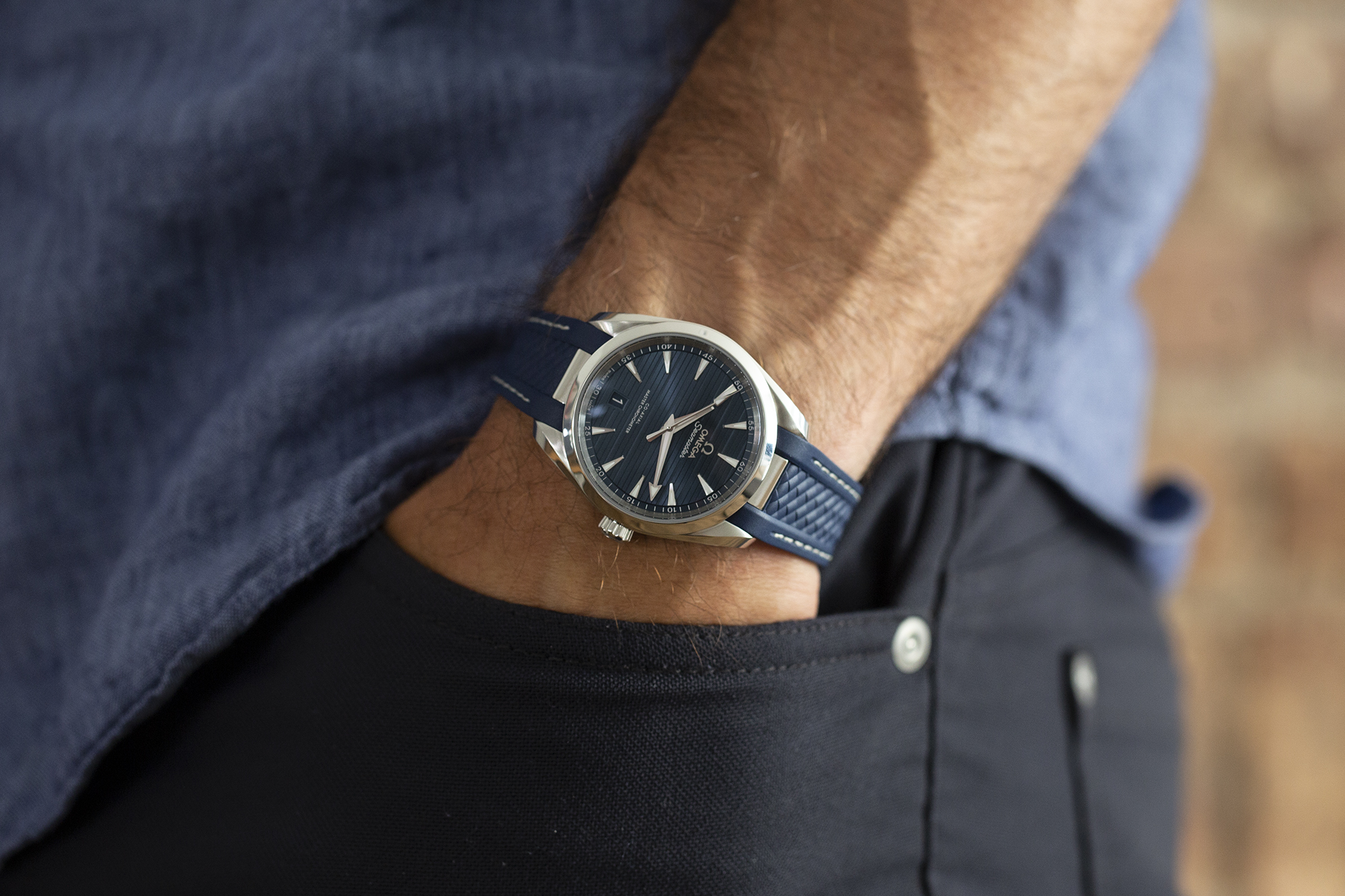 オメガのエントリーモデルとして、アクアテラ 150Mはとても秀逸な一本だと僕は思う。 ラバーストラップが59万円(スティールブレスレットが61万円、いずれも税抜価格)のアクアテラ 150Mは、ドレッシーさとスポーティさを絶妙に両立させ、オメガ(およびスウォッチグループ)の開発力を活用したテクノロジー志向の腕時計である。僕ならスティールブレスレット、またはNATOストラップに換装し、アクアテラ 150Mの38mmケースと細部まで行き届いたダイヤルデザイン、そして大胆な色使いを楽しむだろう。 僕は、オフィス、プール、ビーチ、週末のボートまでシーンが変わっても違和感なく使える時計が好きだ。