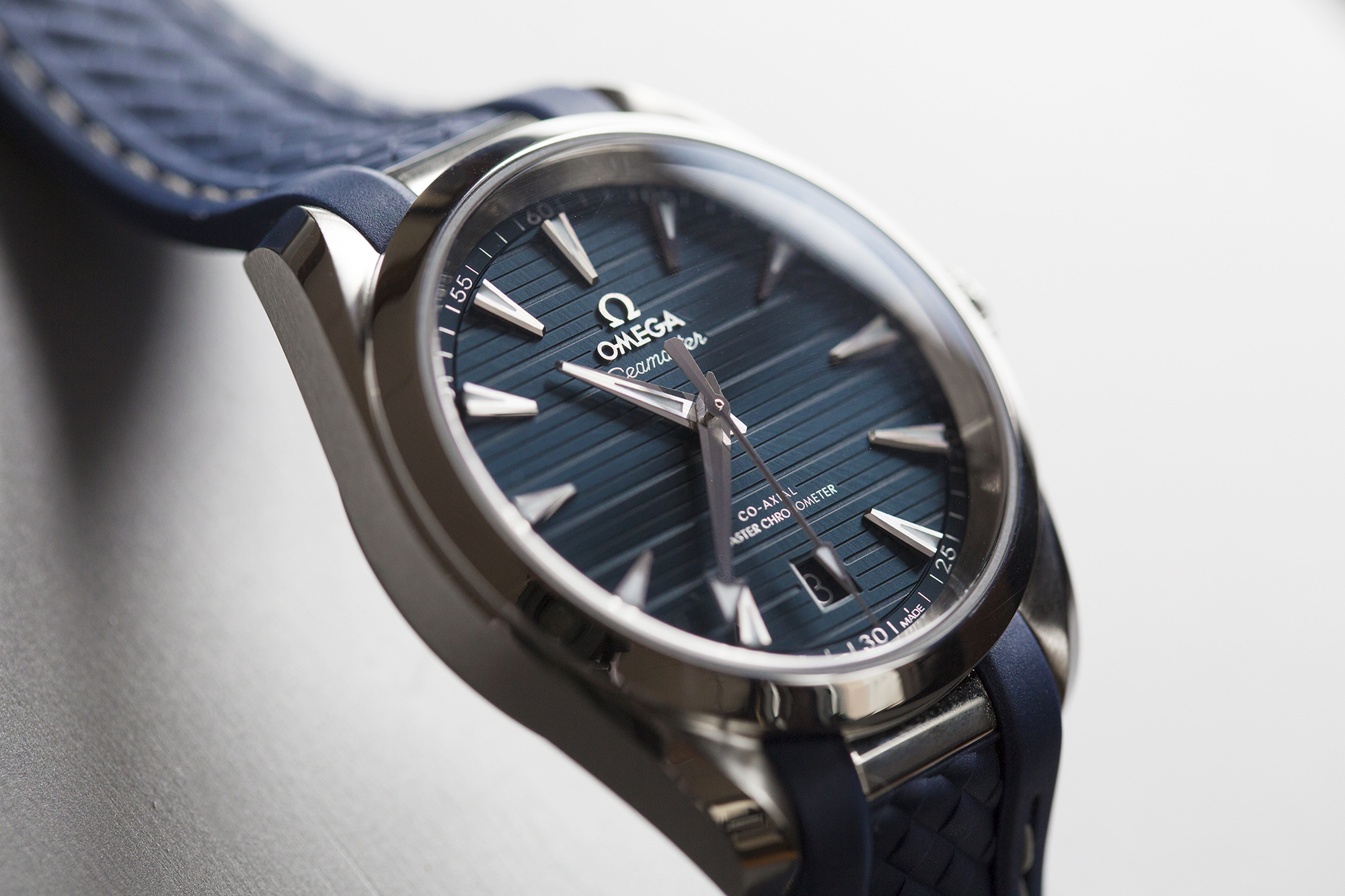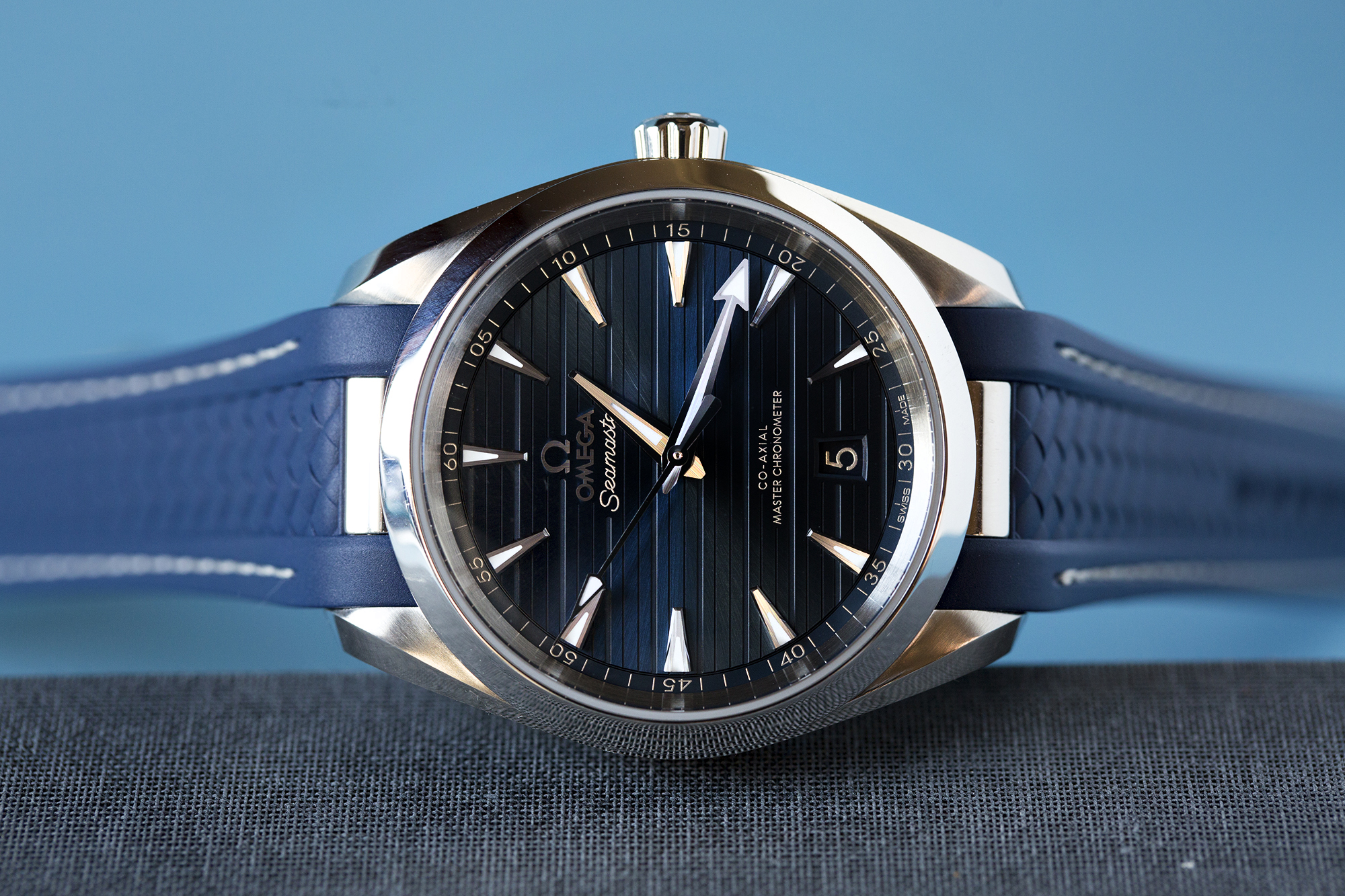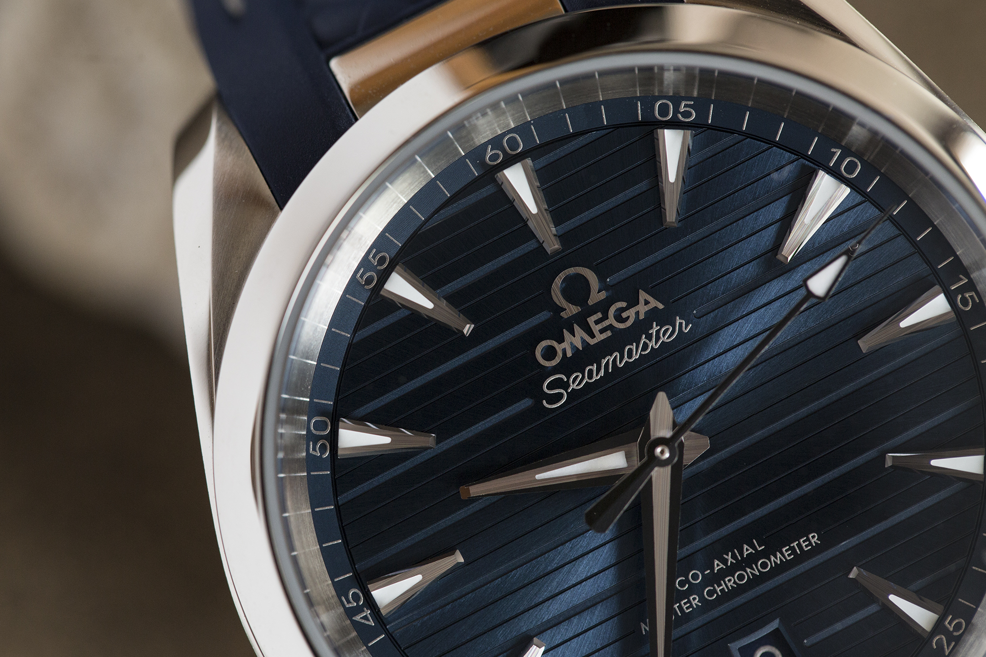 全体的にアクアテラ 150Mのダイヤルの仕上げは明るく、見やすく、非常に丁寧で、真のスポーツウォッチらしさを十分に保ちながら、手に巻いた感覚は特別なものとなっている。