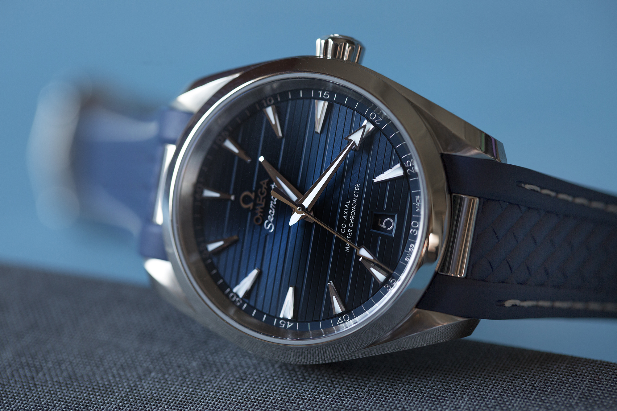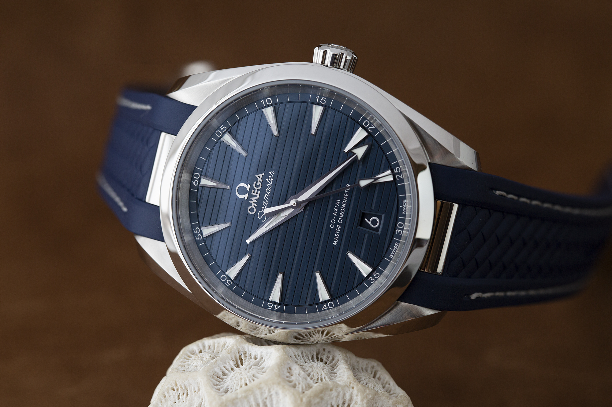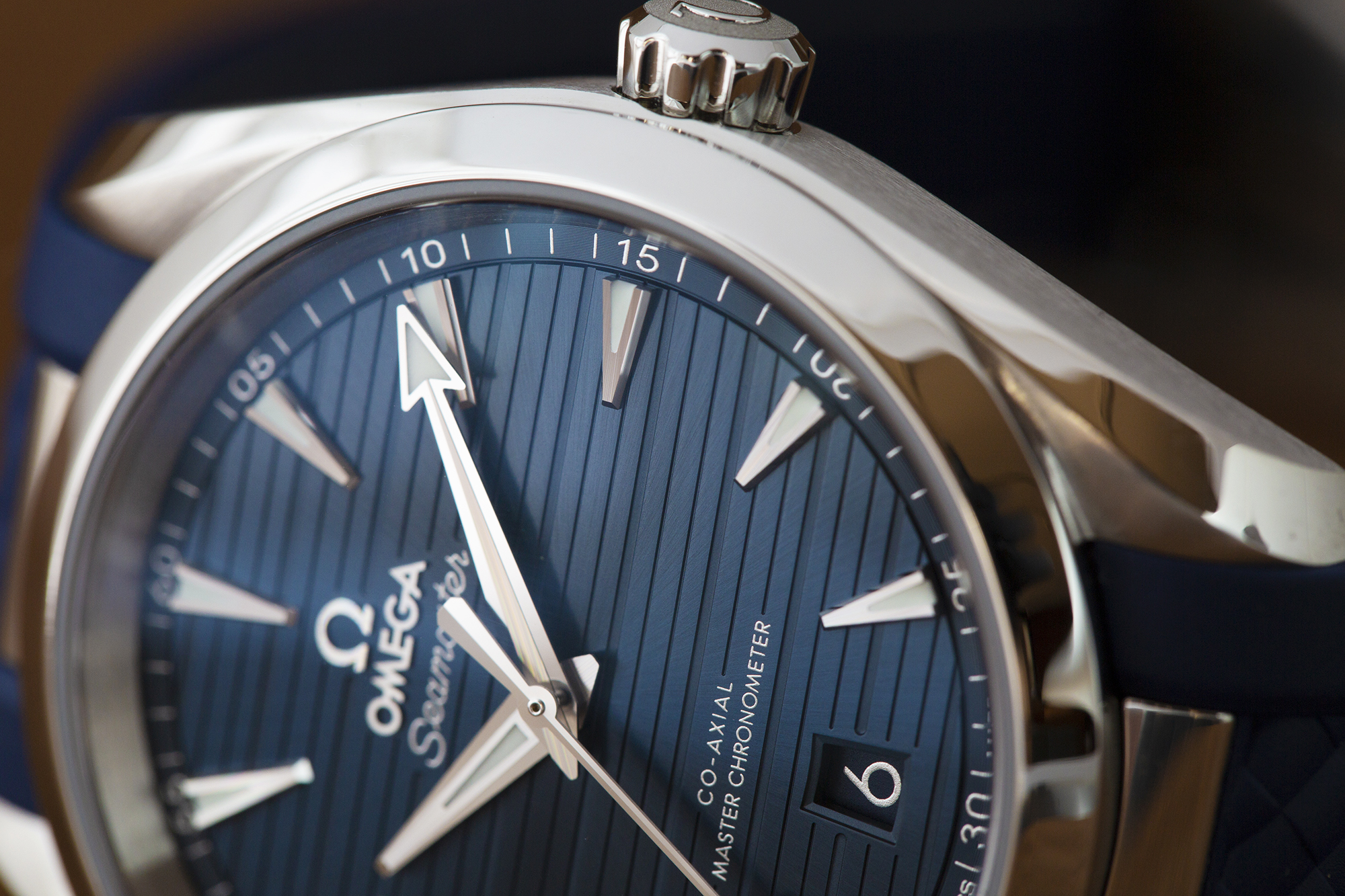 全体的にアクアテラ 150Mのダイヤルの仕上げは明るく、見やすく、非常に丁寧で、真のスポーツウォッチらしさを十分に保ちながら、手に巻いた感覚は特別なものとなっている。
