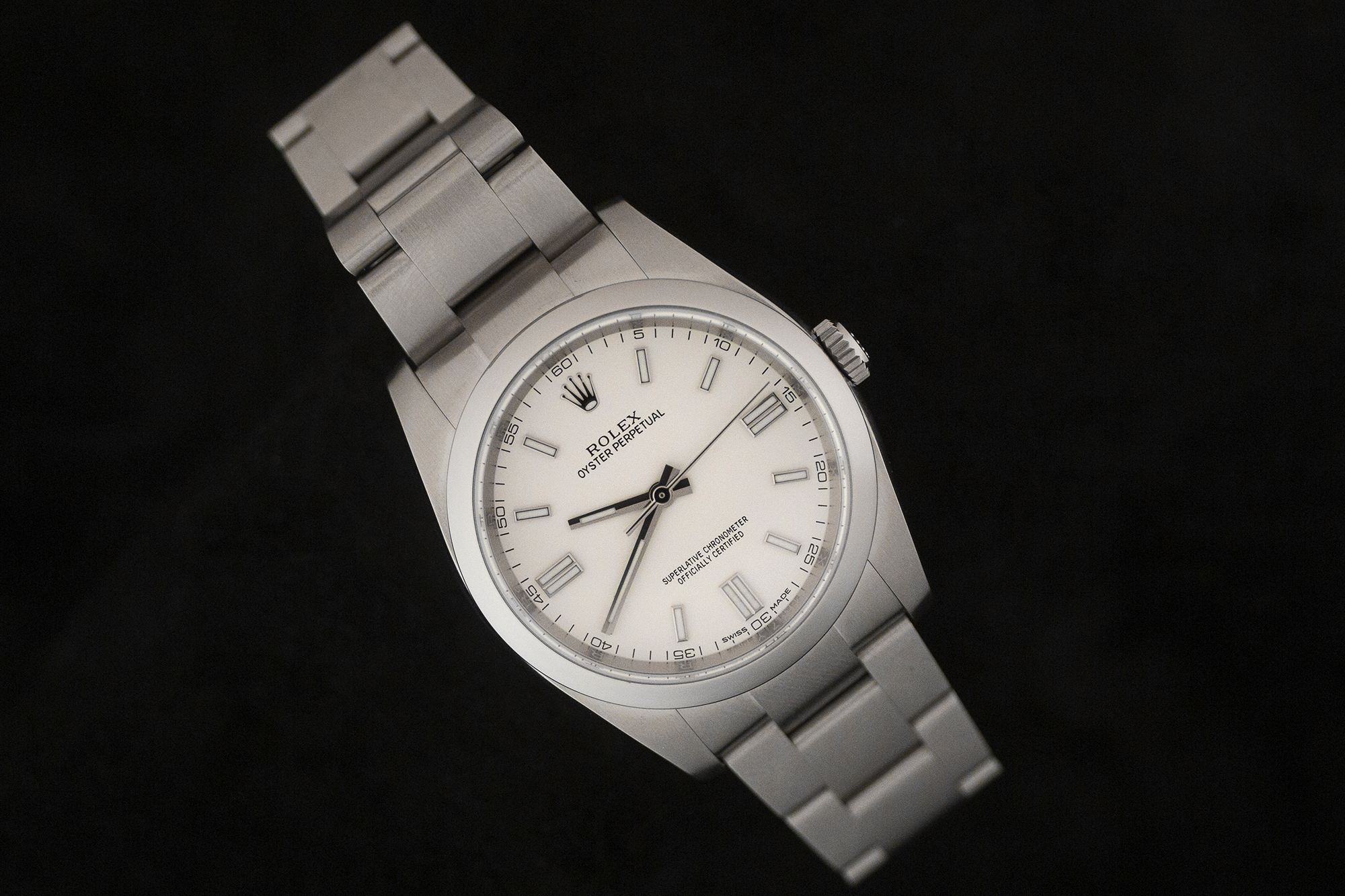 そこで、ロレックス オイスターパーペチュアル 36mmである。ロレックスが矜恃とするべきものを代表する時計であり、単にロレックスの手頃なモデルではなく、ある意味では、最も純粋なロレックスらしさを堪能できるモデルだ。「オイスター」という名前は、1926年にロレックスの時計に初めてつけられた。「パーペチュアル」という用語は、パーペチュアルカレンダー(初心者にとっては混乱の原因となることもあろう)ではなく、自動巻き機構を指す。