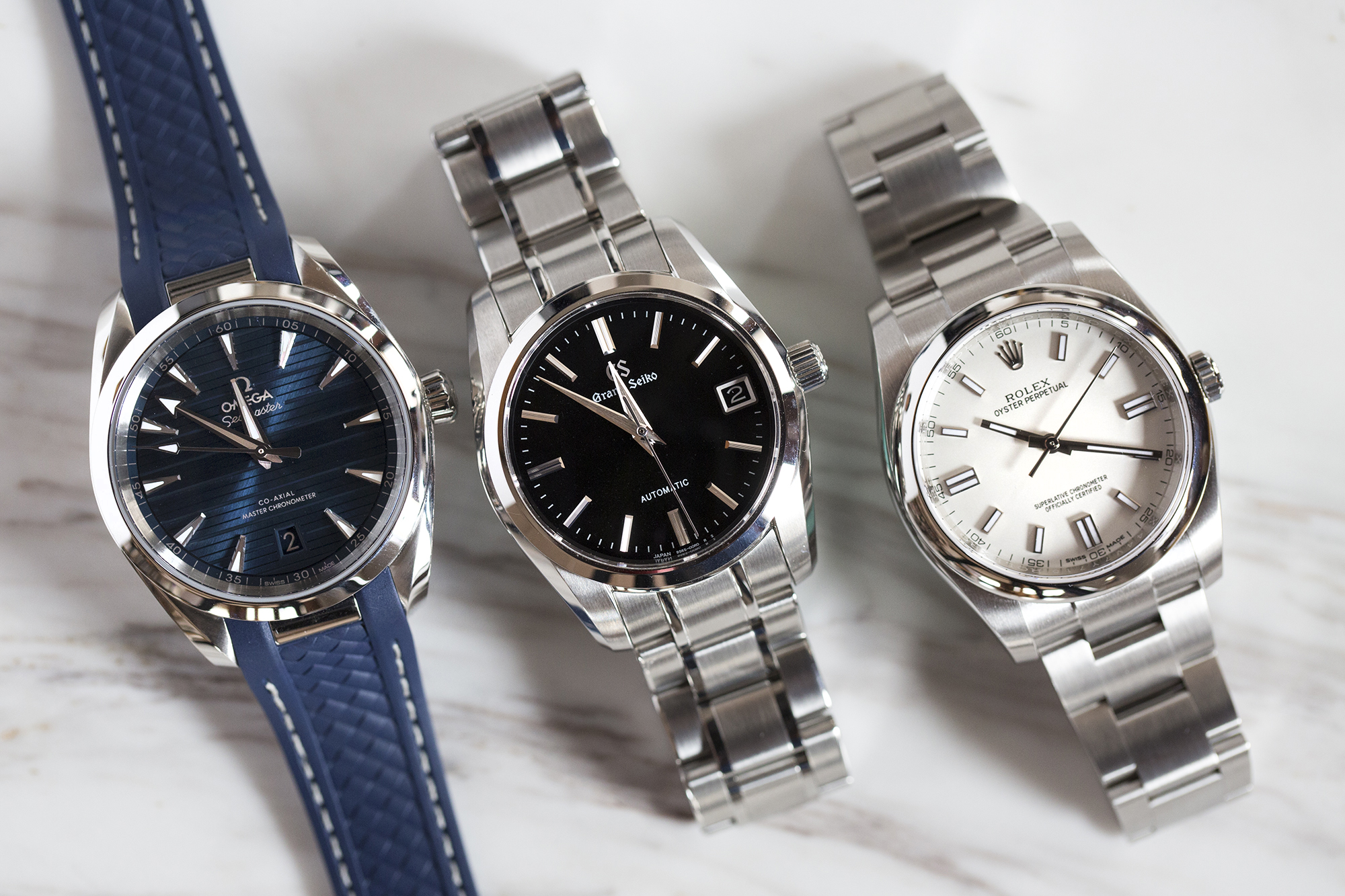 それでは、ロレックス、オメガ、およびグランドセイコーのエントリーモデルを購入することと、他社製の低価格ムーブメントを搭載する時計との違いは何でしょう? 3社はそれぞれ、最も手頃な価格のモデルにおいてすら、特別で魅力的なものを感じさせてくれます。だから、これら3本の時計の内どれを自分のコレクションに追加するかを選択するのは簡単には決められないのです。
