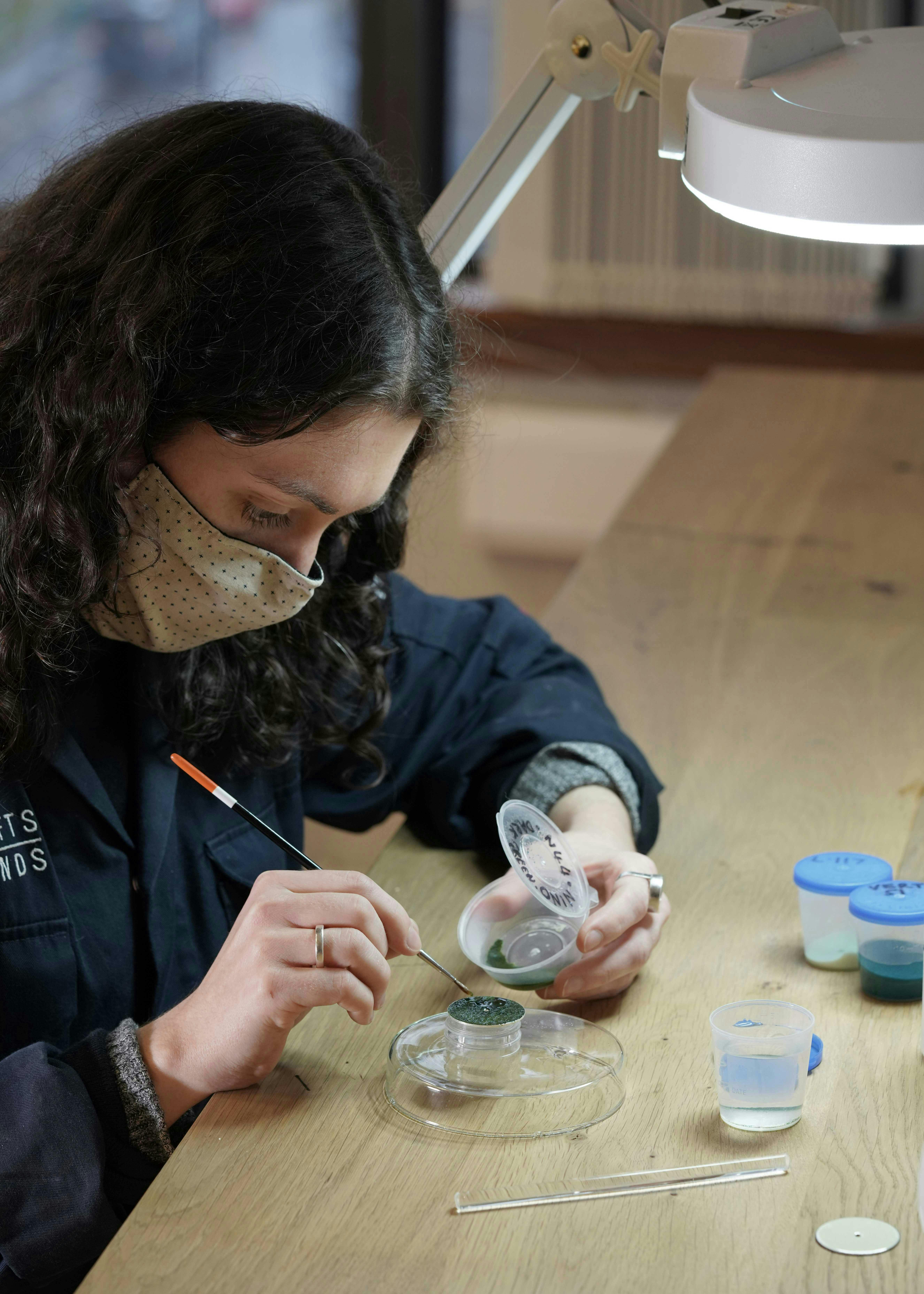 アンオーダインのダイヤルにエナメルを施すサリー・モリソン(Sally Morrison)氏。