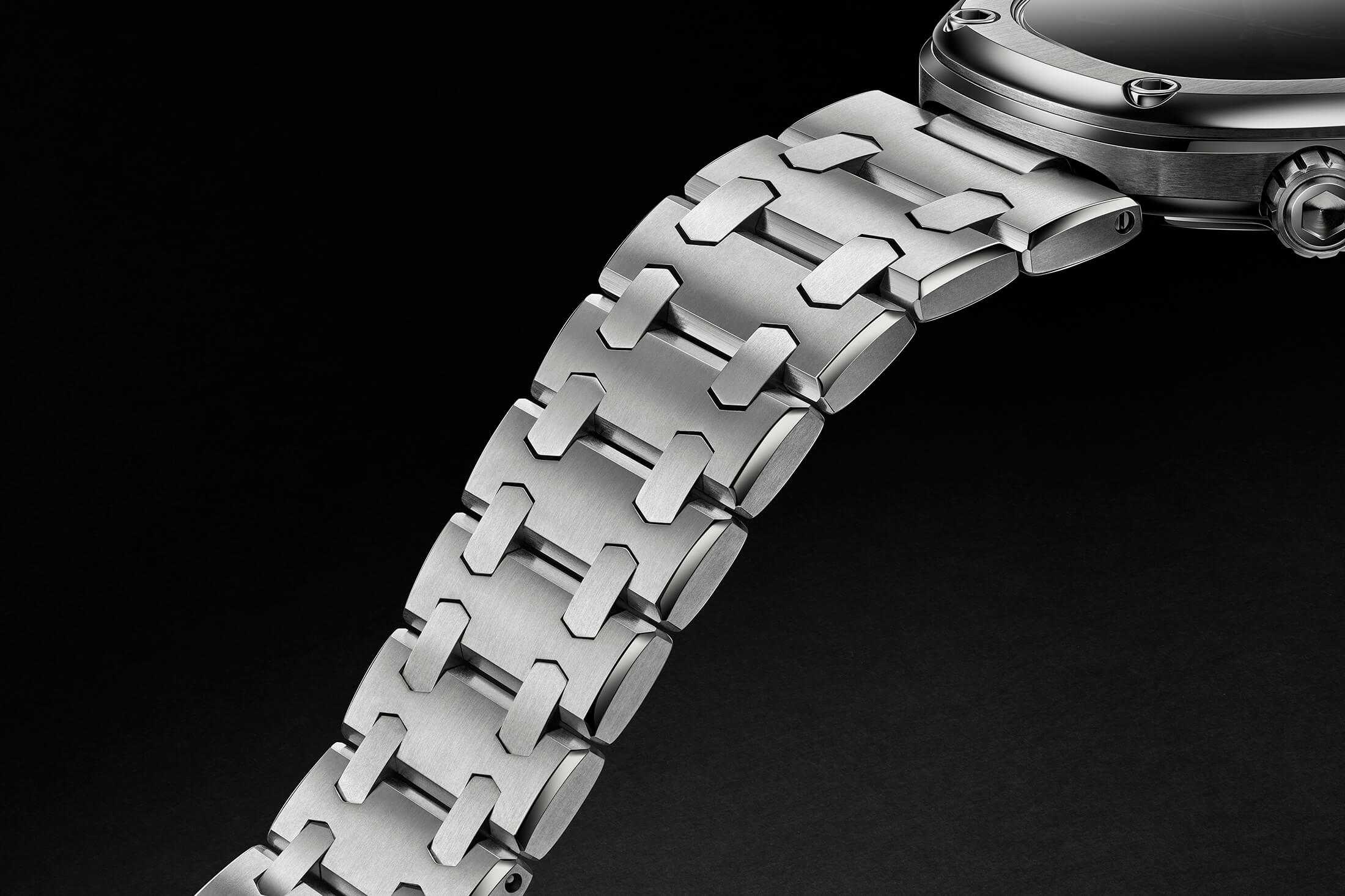 セイコーは近年ブレスレットの改良に真摯に向き合っているが、顕著に成果が現れたのがこのロコモティブだと思う。ジェンタ特有のデザインが与えられたこのブレスレットは、いわゆるトレンドのラグジュアリースポーツを想起させる。しかし通常、見た目のスポーティさを叶えるために特殊なリンクを用いたブレスレットは可動域が狭く、またケースに対応してコマ自体がやや厚くなることも相まって、つけ心地は若干犠牲になる傾向にある。対して本機の六角形の中ゴマは可動域が非常に広く、文字通り腕に吸い付くような滑らかさを備えており、正直このジャンルにおいてハイエンドなクオリティを実現しただろう。それは、明らかに薄型の設計が寄与しており、このデザインを具現化した開発チームに拍手を贈りたい。1点、バックルにはまだ改善の余地がありそうで、開閉する際の“パチッ”という瞬間の指へのフィードバックや、折りたたみ部分の裏面がブレスレットに干渉することでの金属擦れの解消など、高級機としての余白はまだありそうだ。