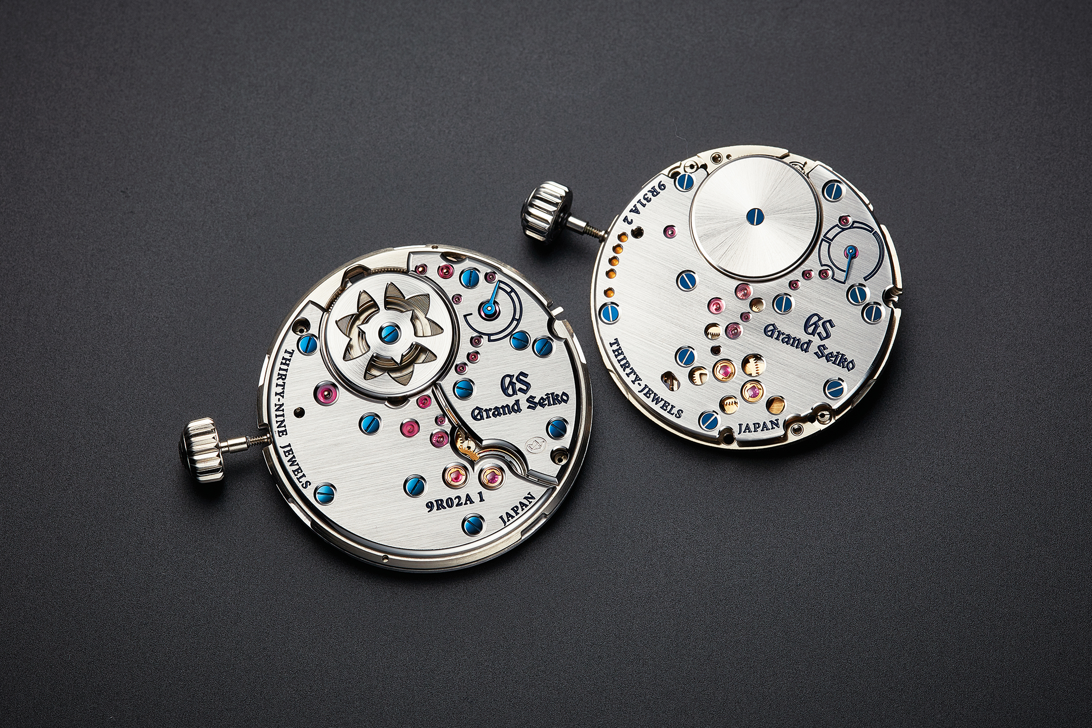 手巻きスプリングドライブCal.9R02(左)と9R31。