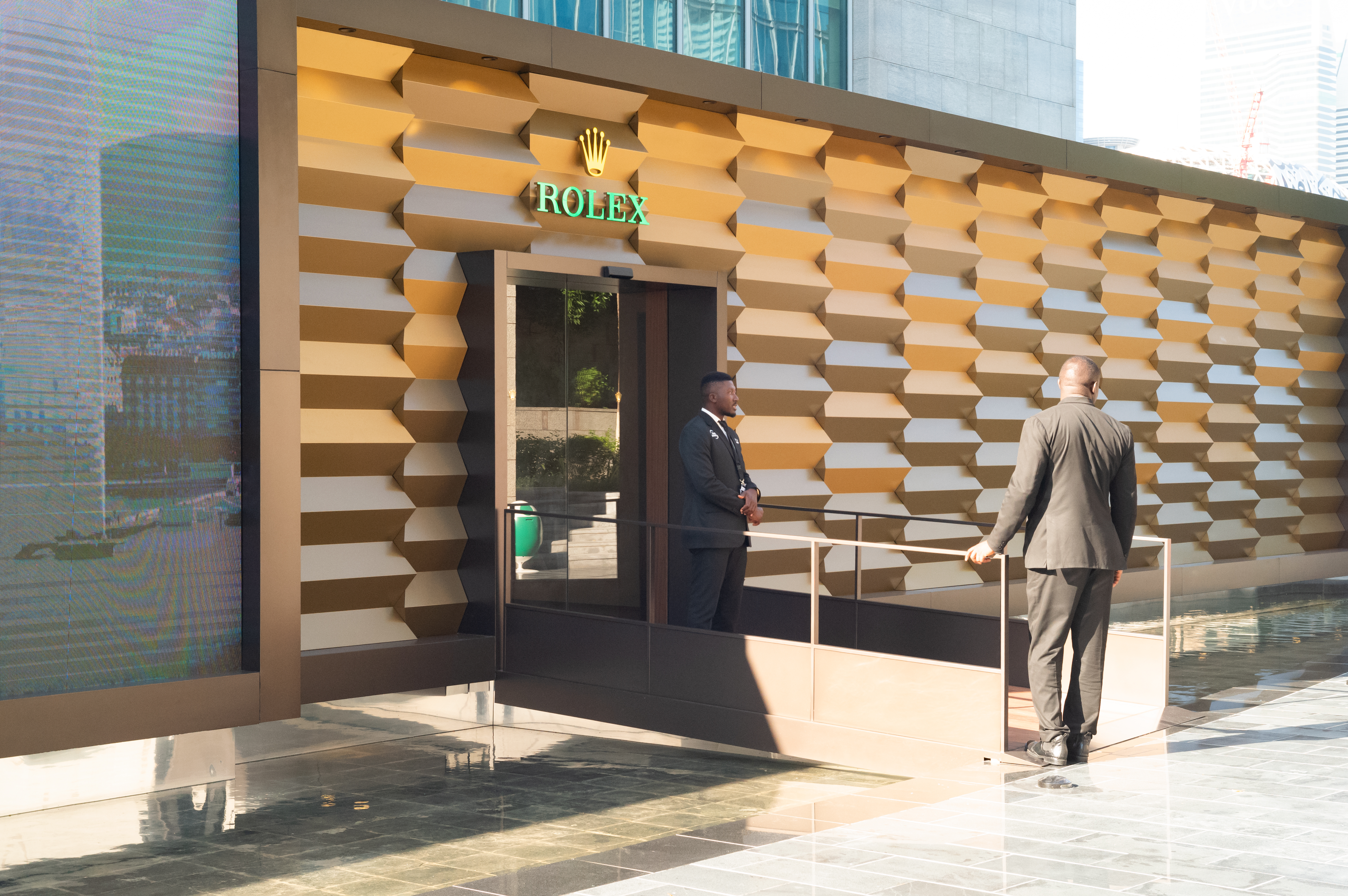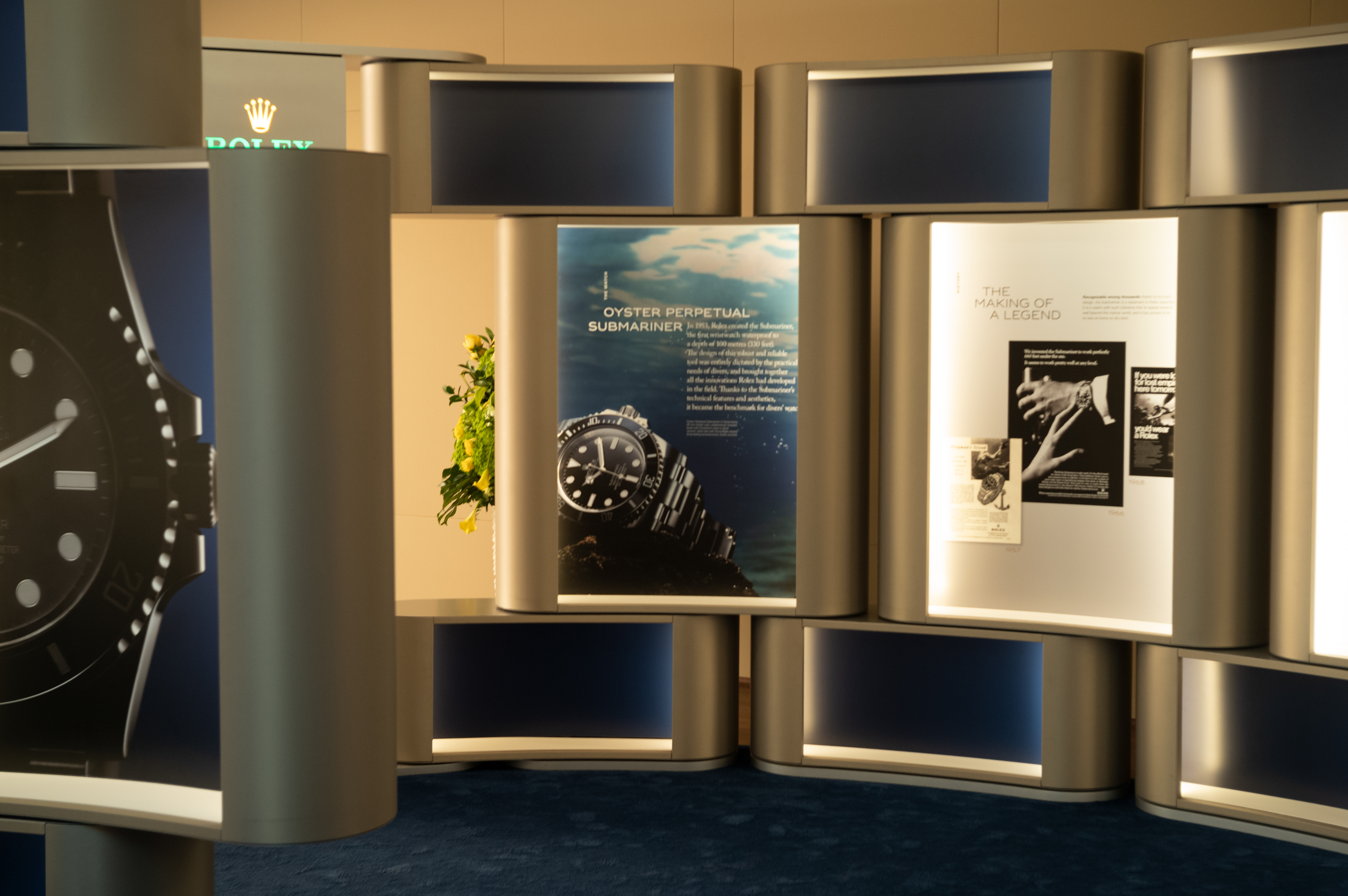 ドバイ・ウォッチ・ウィークで大きな存在感を放っていたのはロレックスで、展示スペースをメインホールの外に設置した時計ブランド二社のうちのひとつであった(もう一社はショパール)。展示スペース内には、ロレックスの歴史における重要な節目の数々に焦点を当てた展示が行われていた。展示スペースは巨大なオイスターブレスレットのような造りが再現された。