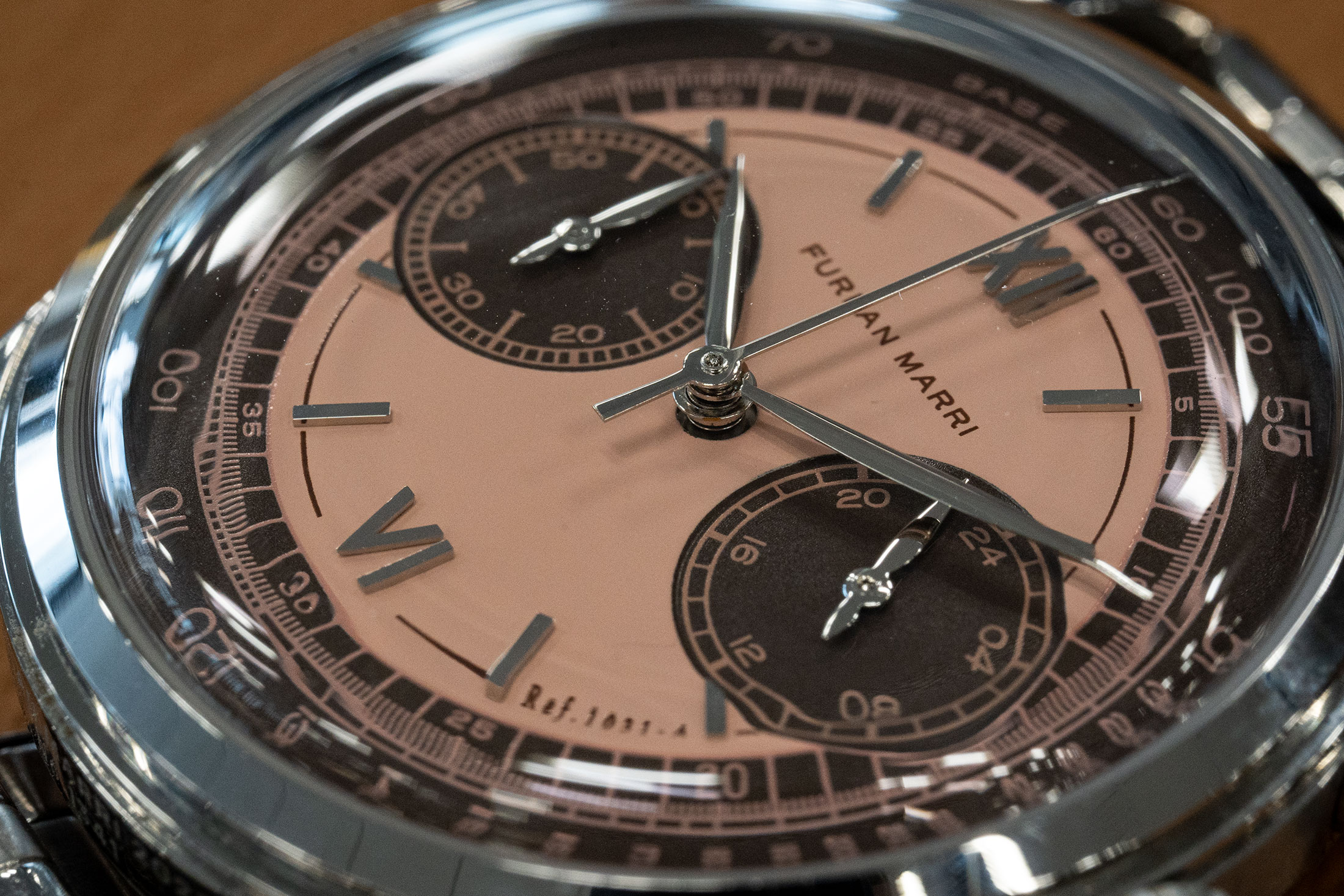 ソニーのカメラとレンズ、リモワのスーツケースにリングヂャケットの一張羅と、今年はひたすら時計以外のもので散財していた。もちろんそれらはプロダクトとしてどれも素晴らしく、長い目で見て自分への投資にもなったと思う。そしてその帳尻を合わせるように、時計は手ごろなポストヴィンテージ期のものをいくつか手に取るだけにとどまった。しかしその分、ユニークで価値のあるものを厳選したつもりである(ブリガリのディアゴノ スクーバ クロノグラフ、ジェンタデザインのセイコー アシエなんかは、我ながらいいチョイスだったと思っている)。写真のファーラン・マリのメカクォーツ・クロノグラフ ハバナサーモンも、そのダイヤルカラーに惹かれて今年譲ってもらったものだ。時計自体は2021年にKickstarterで展開されたファーラン・マリのデビュー作で、当時5万7000円で販売されていた。この時計は発売からまもなく二次流通市場で20万円を超える高値で取引されるようになり、その後機械式3針モデル、機械式クロノグラフを展開、さらにOnly Watchに出品されたセキュラーパーペチュアルカレンダーを開発し、ブランドは着実にその存在感を示し続けてきた。