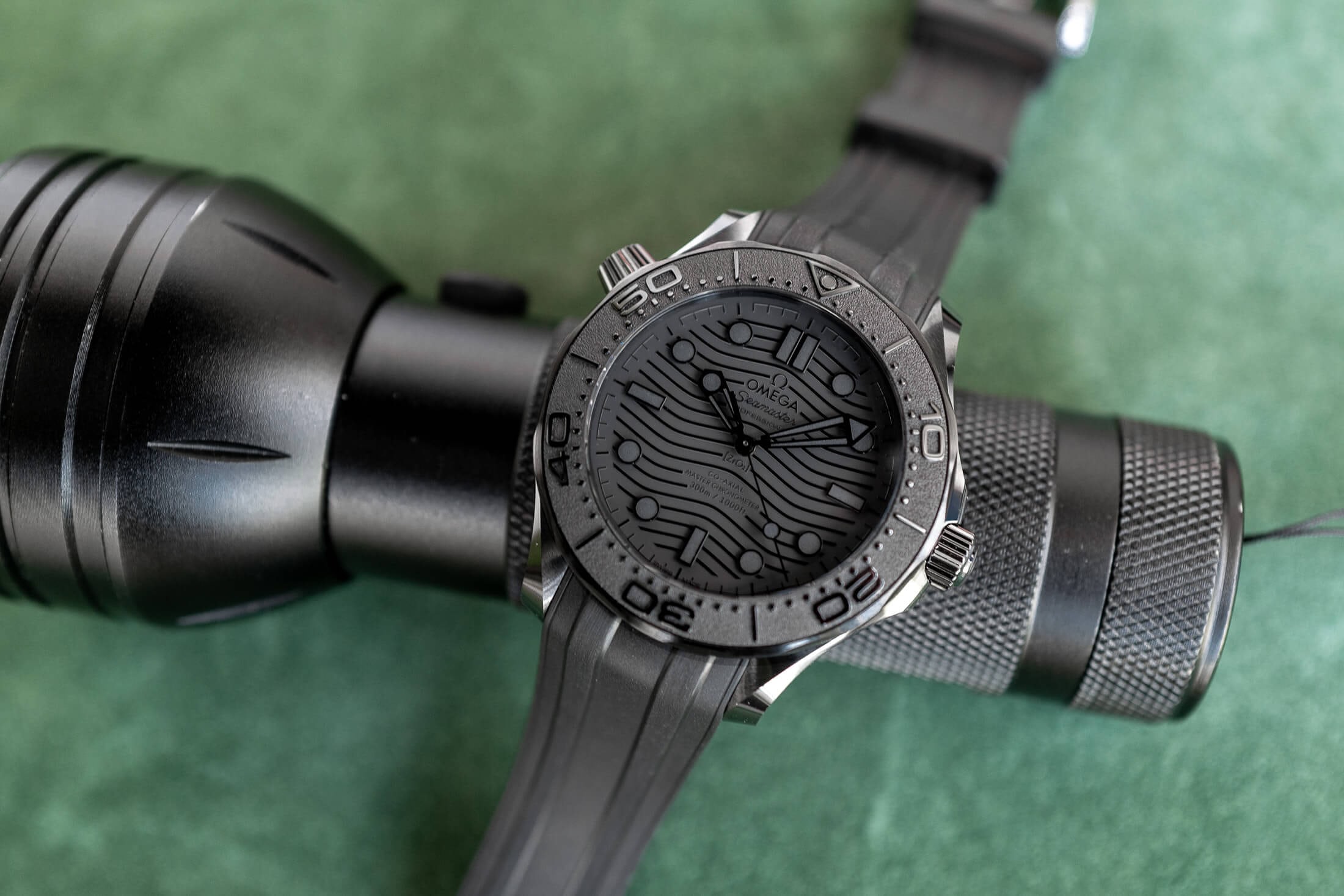 今年は実にたくさんのオメガを紹介してきた。Cal.3861を搭載したスピードマスターにシーマスター 300など主役級のモデルがアップデートされたことは大きなニュースだし、実際魅力的な時計たちだ。ただ、僕としてはシーマスターのダイバーズウォッチとしてのあり方を根底から覆したような、このシーマスター ダイバー300M ブラック ブラックに心を掴まれてしまった。果たしてこの時計がダイビング中に見やすいだろうか? オメガは、レーザーで波模様を施したブラックセラミック文字盤、針とインデックス、ブラックセラミックベゼルそれぞれに異なった仕上げを施して視認性を確保した、と説明するがこんな技術の贅沢(無駄)づかいはなかなかない。デザインとしては定番のシーマスター ダイバー 300Mが完全にアバンギャルドに変身し、彫刻のように象られたベゼルの質感に強烈な個性を感じ取れるだろう。