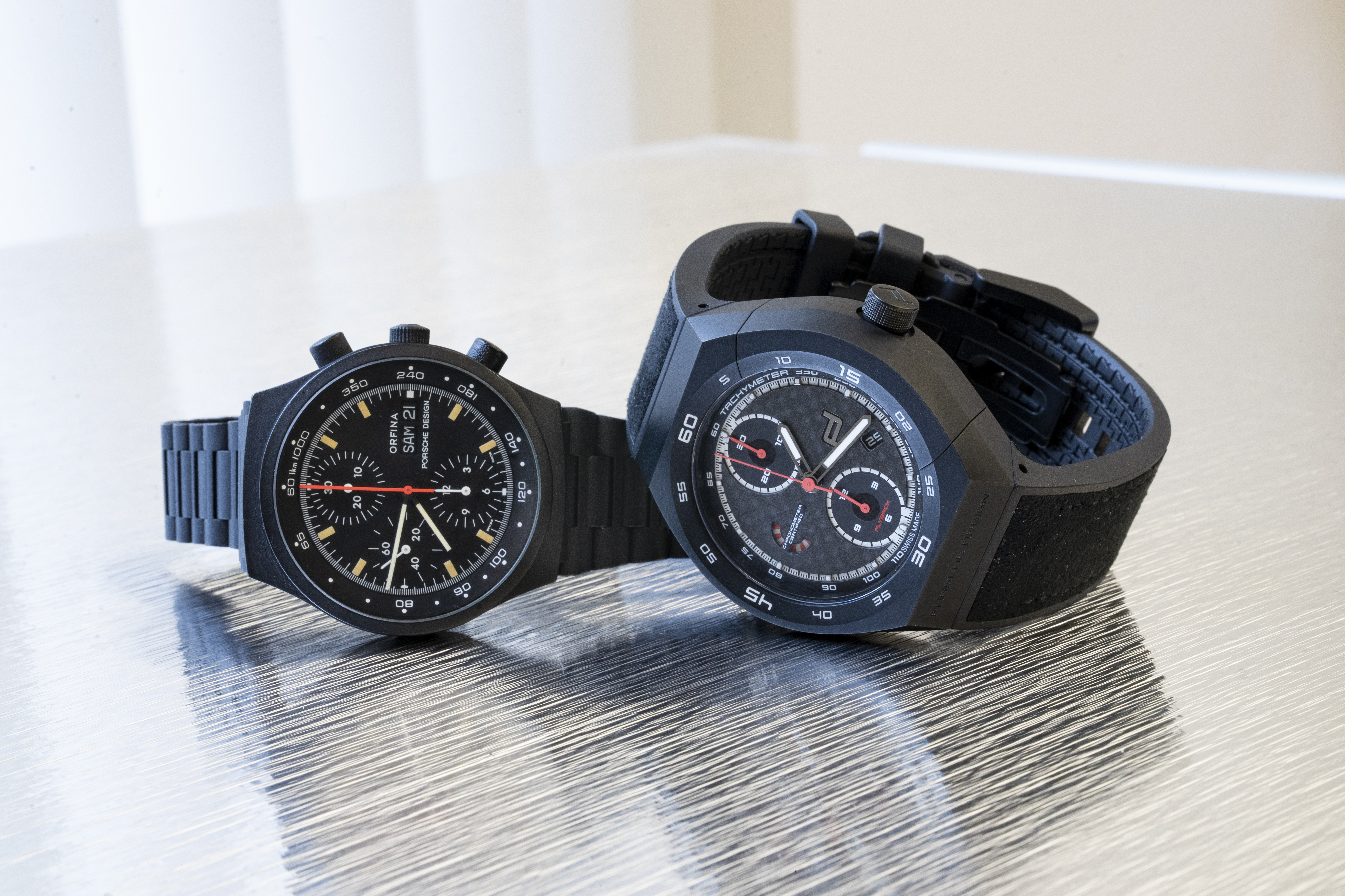 左)ポルシェデザイン by オルフィナ、右)ポルシェデザイン モノブロック アクチュエーター クロノグラフ。