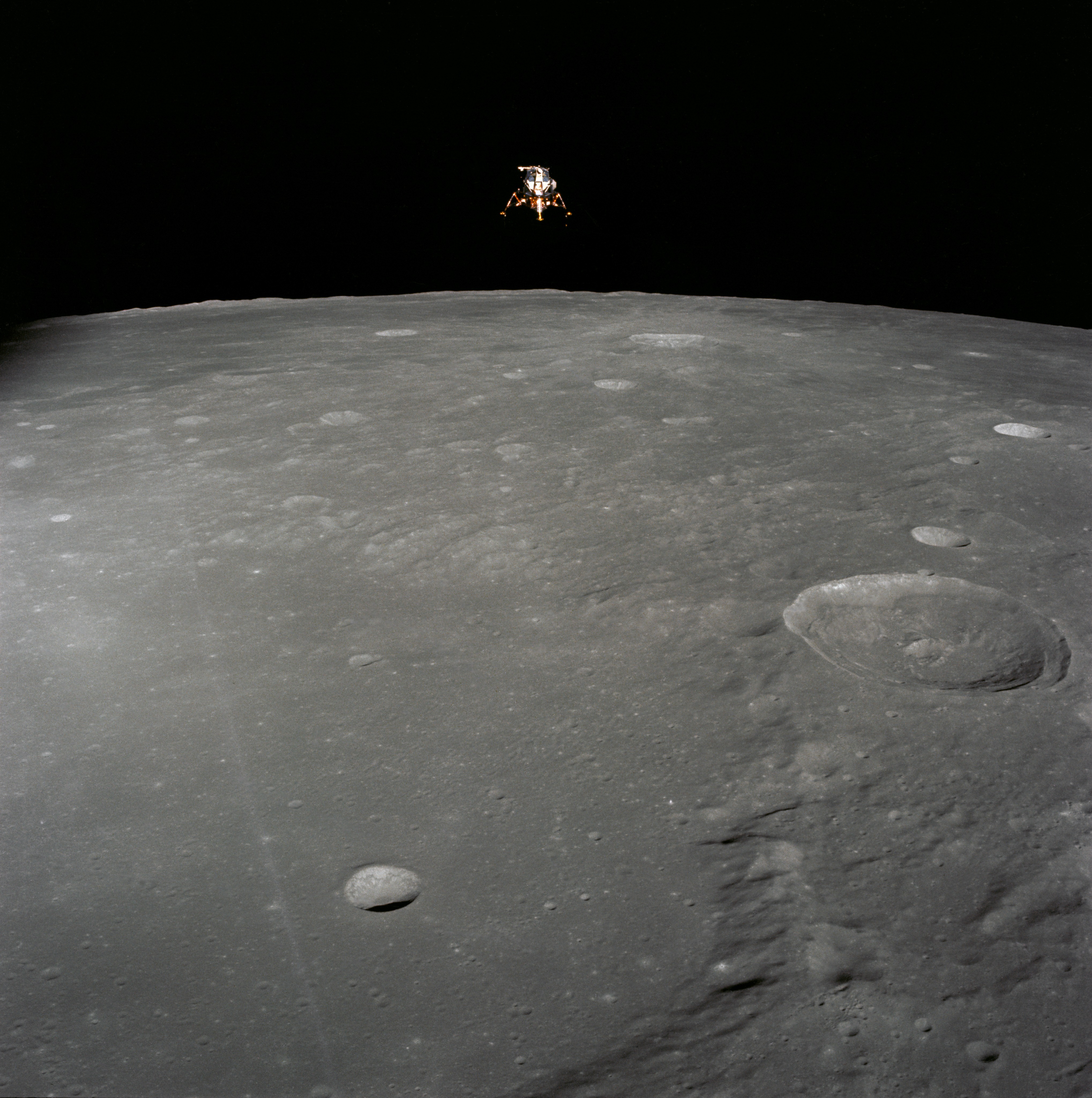 そして月に到達すると、CSMの主エンジンが逆噴射し、宇宙船の速度が低下して月周回軌道に投入された。その後、LEMはCSMから分離し、3人の宇宙飛行士のうち2人が月面に降り、CSMを操縦するために1人の宇宙飛行士が残った。