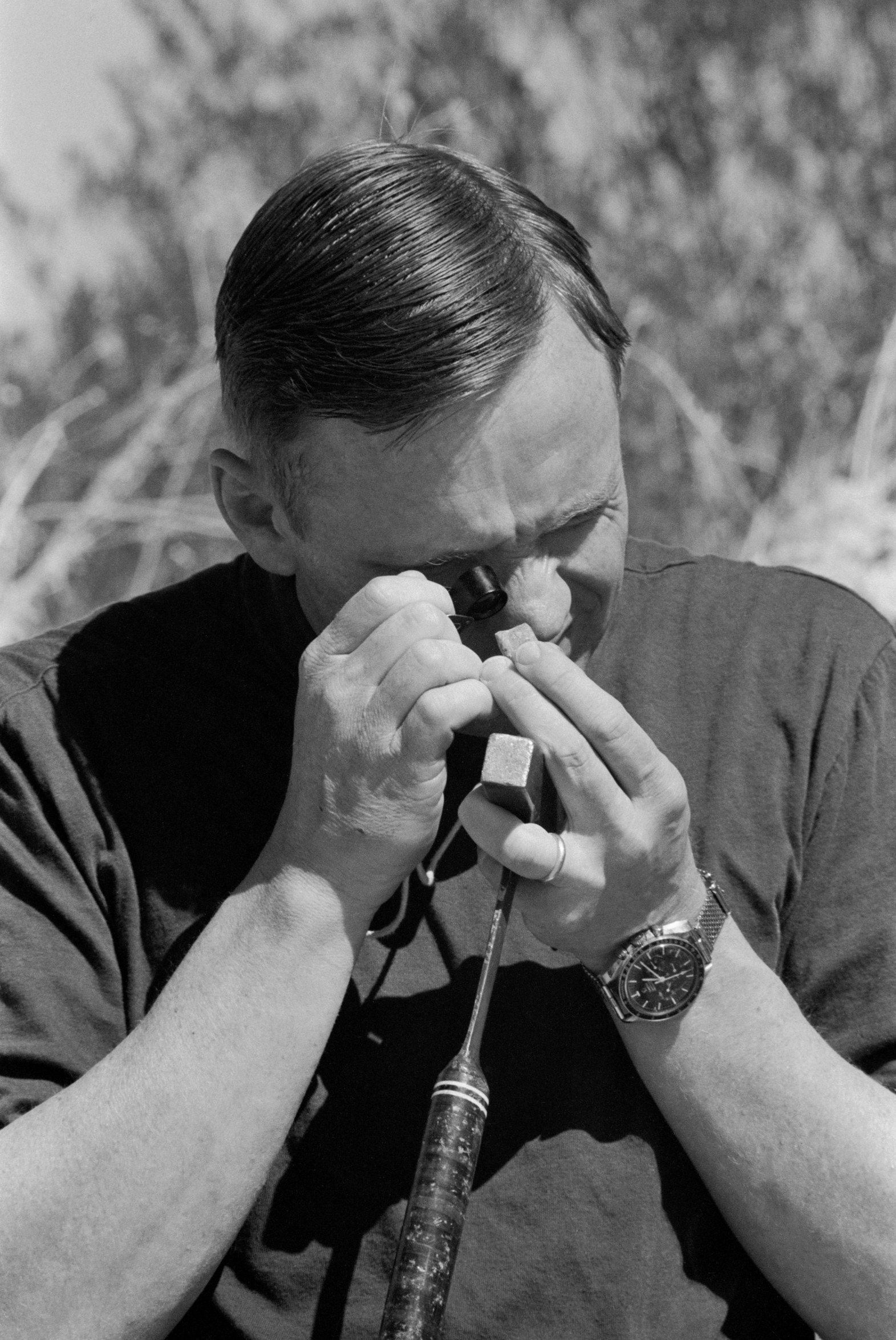 アポロ11号ミッションに備え地質学トレーニングを受けるニール・アームストロング、その腕にはスピードマスターが。