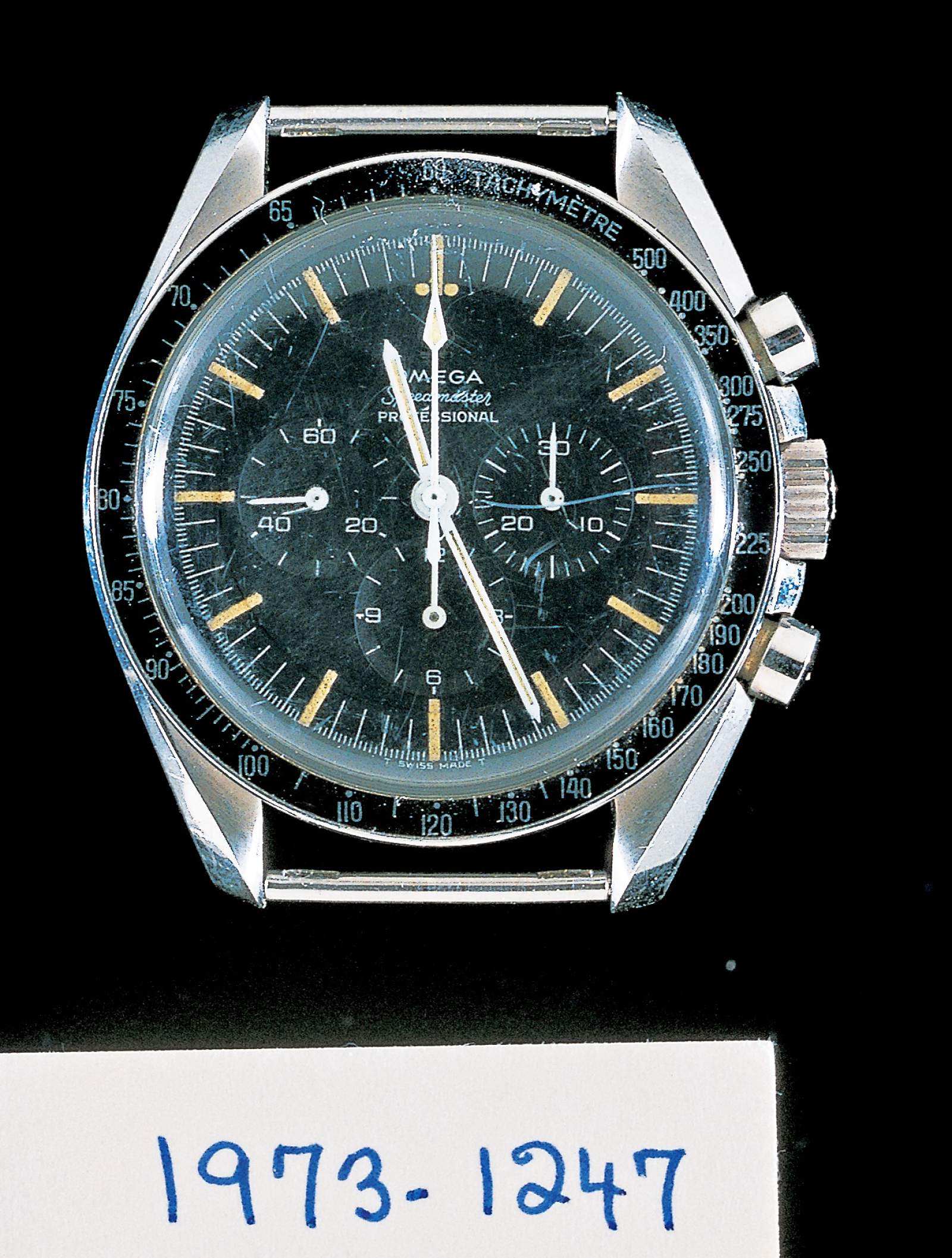 スミソニアン博物館に所蔵されているアームストロング船長のスピードマスター。スミソニアンに届いたのは1973年という。