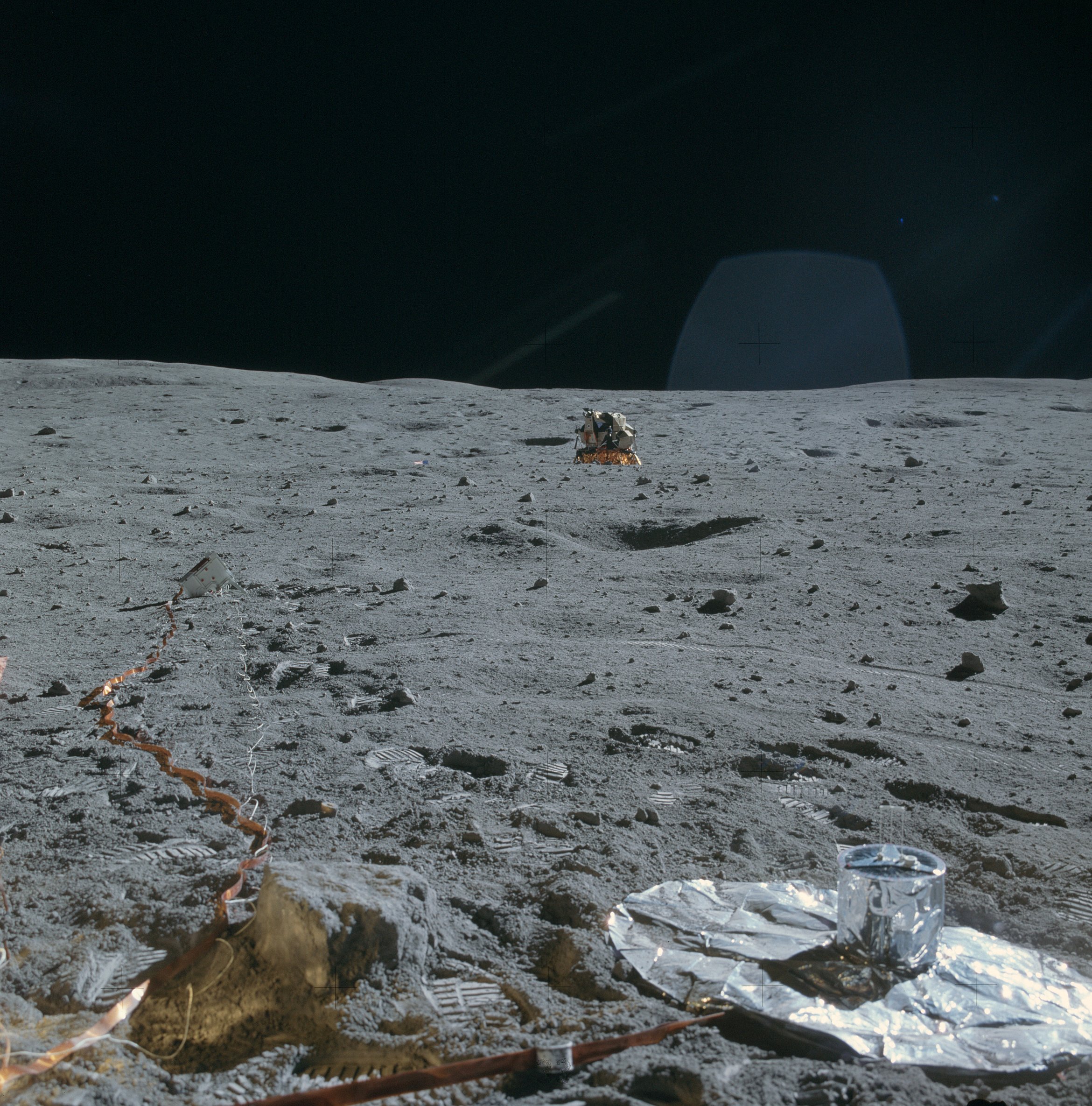 アポロ16号の着陸地点、左端に見えるのは、人工月震実験パッケージ。