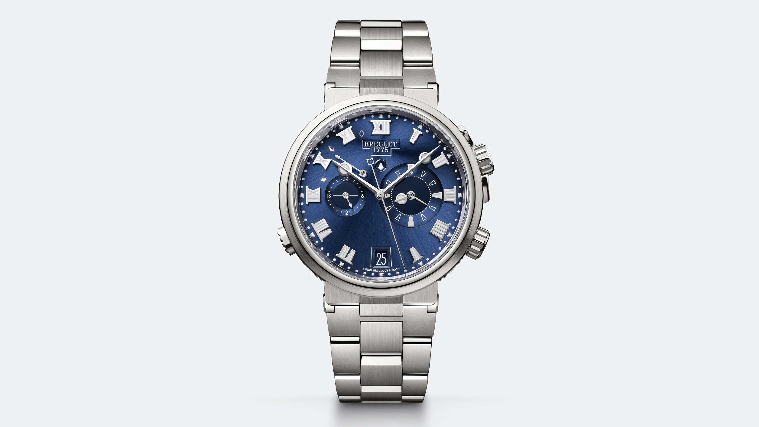 大いなる海に抱かれ、探検の精神と尽きない好奇心を象徴するコレクションがブレゲ マリーンだ。新たにブルーダイヤルのチタンモデルとスレートグレイダイヤルのローズゴールドモデルを加え、魅力をさらに広げた。多様化するライフスタイルに応え、オンオフを問わず、つねに満ち足りた時間とさらなる刺激を与えてくれる。