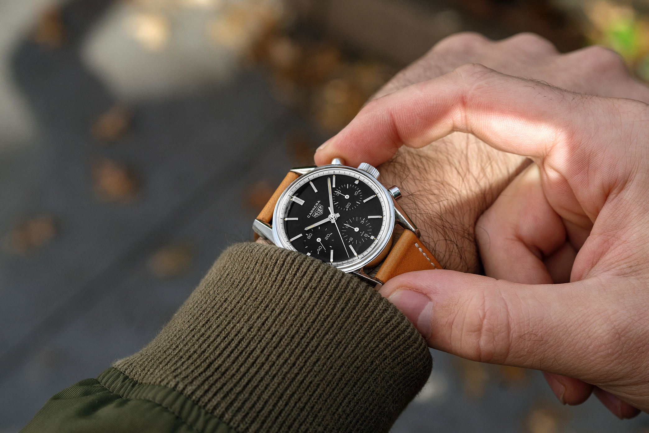 個人的に、ジャック・ホイヤーによるオリジナルの1960年代製カレラほど、目的をもって作られたデザインを象徴するヴィンテージウォッチはないと思う。2020年にはいくつかの初期モデルを販売したが、最も目立っていたのは、10月に入荷したこの後期 初期仕様のRef.2447Nだ。サブダイヤルとテンションリングの明確なラインの区切りから、ブラックダイヤルとホワイトアクセントのコントラストに至るまで(リファレンスナンバーの“N”はもちろん、ブラックダイヤル“N=ノワール”を示す)、初期のカレラに勝るものはない。そして、このモデルは私が今まで見た中で最も素晴らしいものの1つだ。シンガー社のダイヤル? もちろん良い。バルジュー72のムーブメント? これも良い。さらに、美しくダイヤモンドポリッシュされた長いラグをもつEPSA製ケース? 間違いない。そう、これ以上にきれいなものは到底ないのだ。