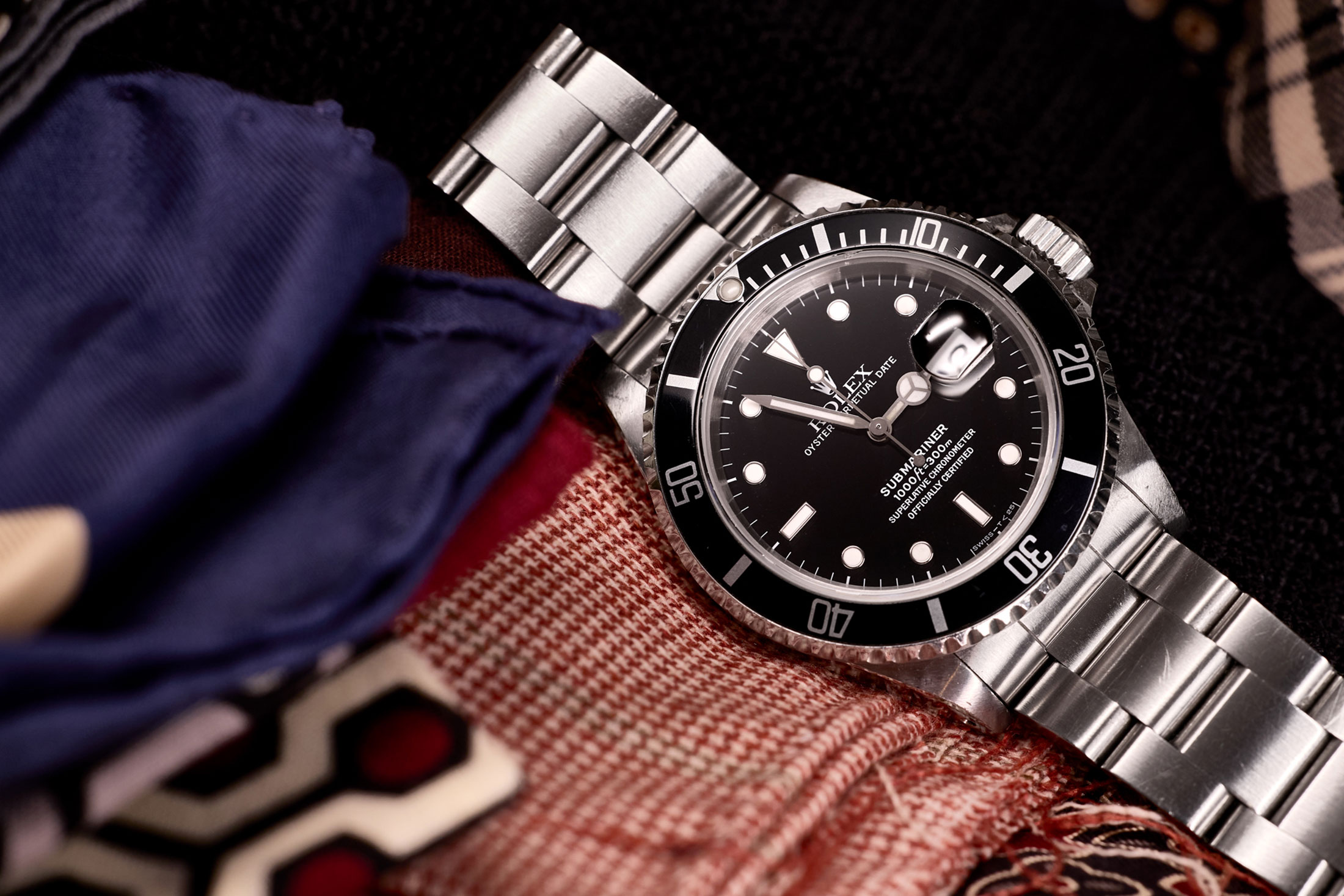 1990年代以降、ナポリ仕立て一本槍を貫いてきた小山氏だが、時計の好みも昔からまったくブレがない。「ミリタリーダイバーズが私にとっての大定番。回転ベゼルをはじめとする機能美に惹かれ続けています。このRef.16610は社会人の初ボーナスで購入しました。当時ファッション好きのあいだではヴィンテージウォッチがブームだったのですが、私はファーストウォッチこそ新品を手に入れたかった。今、改めて考えれば、もともとエンジニアになるような機械好きですから“最新が最高”という哲学に触れたかったのではないかと思います。いや、ただ天邪鬼だっただけですかね(笑)。サブマリーナーを選んだのは、ジェームズ・ボンドへの憧れからです。ビームスに入社してからは、先輩から『いますぐそれを売って、エクスプローラーのティファニーWネームに交換しろ』なんて言われましたが、愛着があって手放しませんでした。夜光にトリチウムが使われている最後の世代なので、購入から30年ほどが経ってほんの少しだけクリーム色に焼けてきました。これからもずっと愛用していきたいですね」