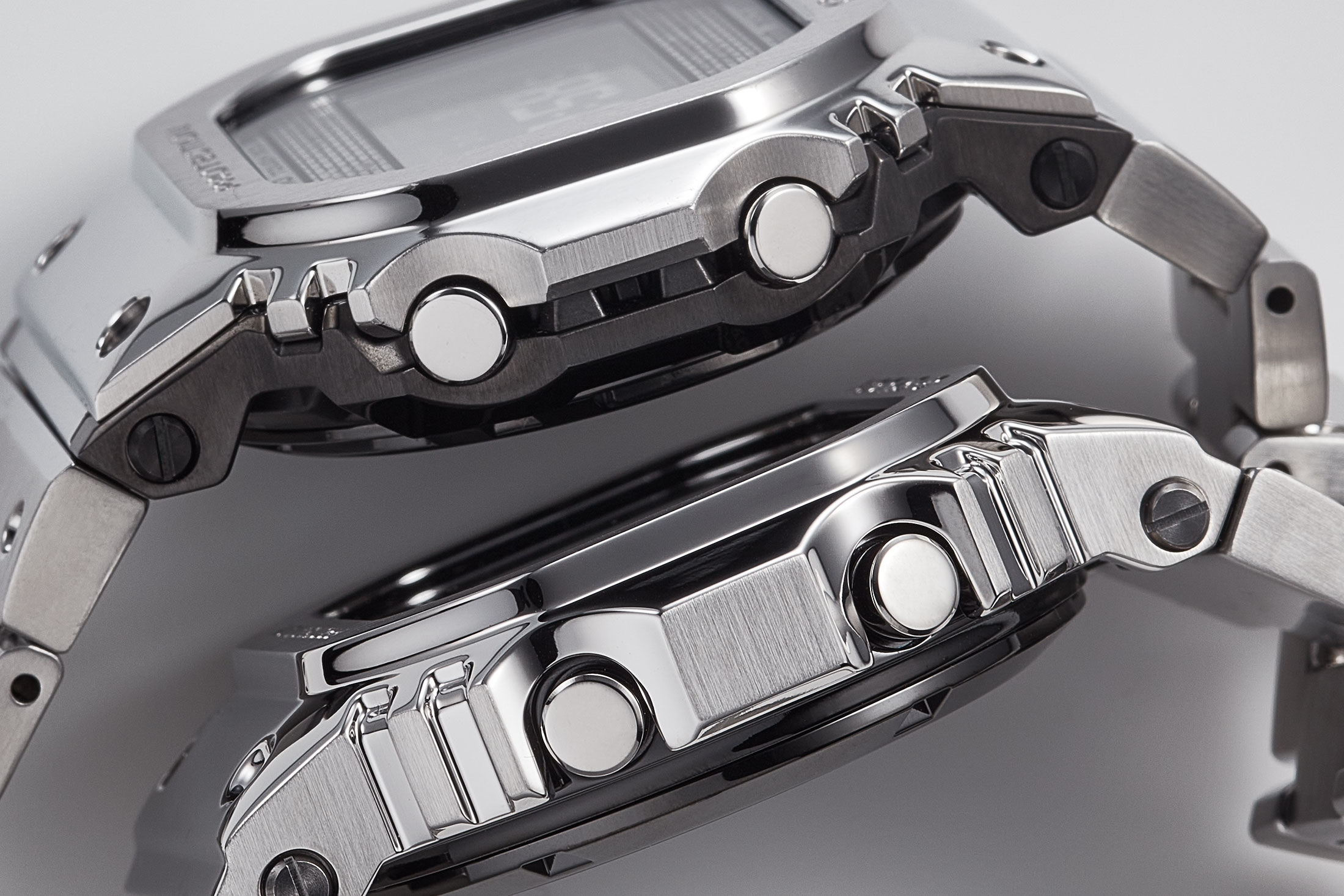 また、ベゼル上面からブレスレットバンドを留める機能ビスをケース上部に採用したことも、GMW-BZ5000の大きな特徴だ。従来のGMW-B5000では、デザインとしてディンプルの凹みが設けられていた箇所である。しかしベゼル上面の薄型化が実現したことで、プラス/マイナスの溝がなく、質感高い仕上げを施したビスを用いることができるようになった。さらに裏側は逆ネジとすることで緩みにくくしている。結果として、正面から見たときの美観や質感もいっそうの向上を見せた。
