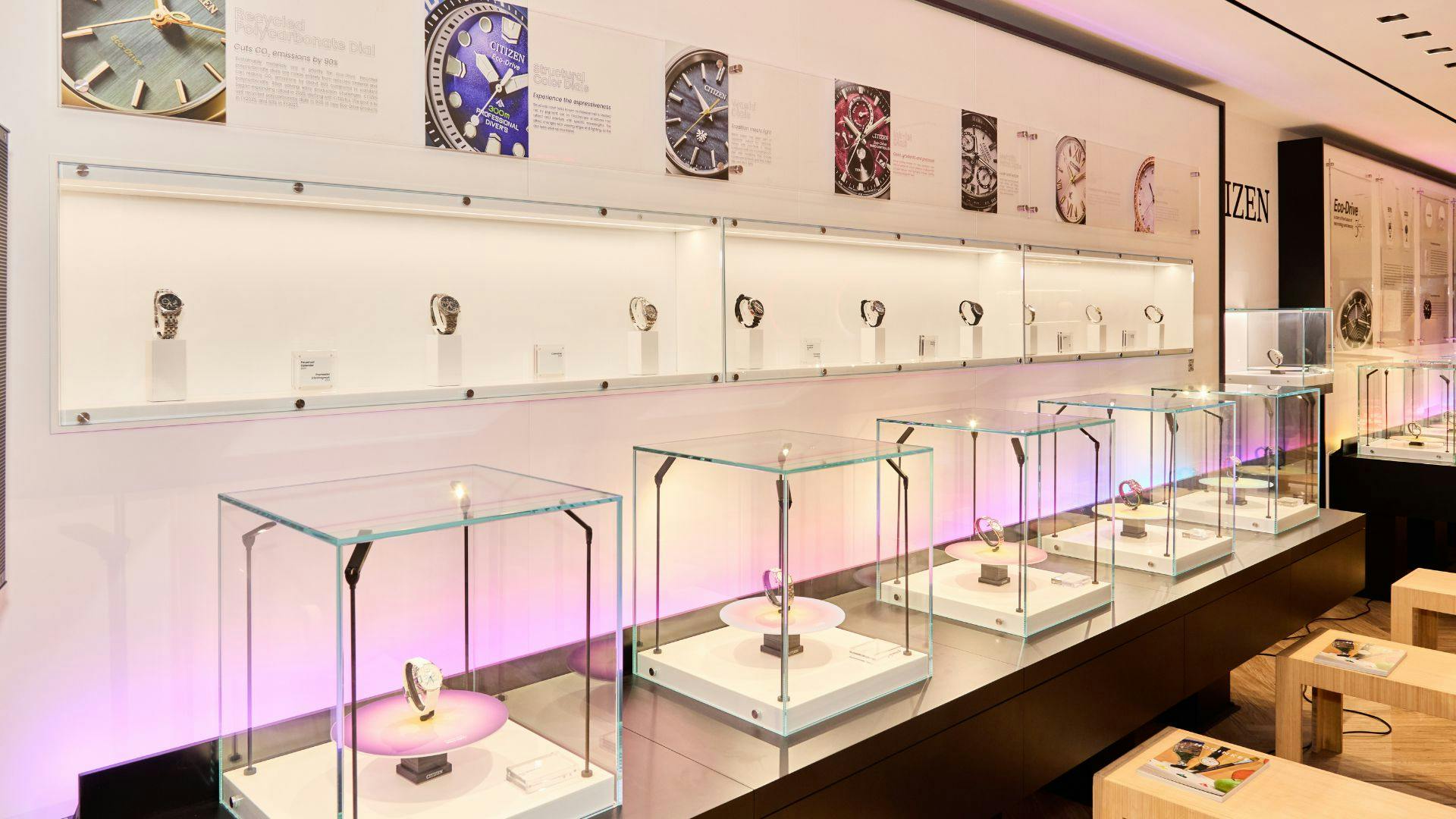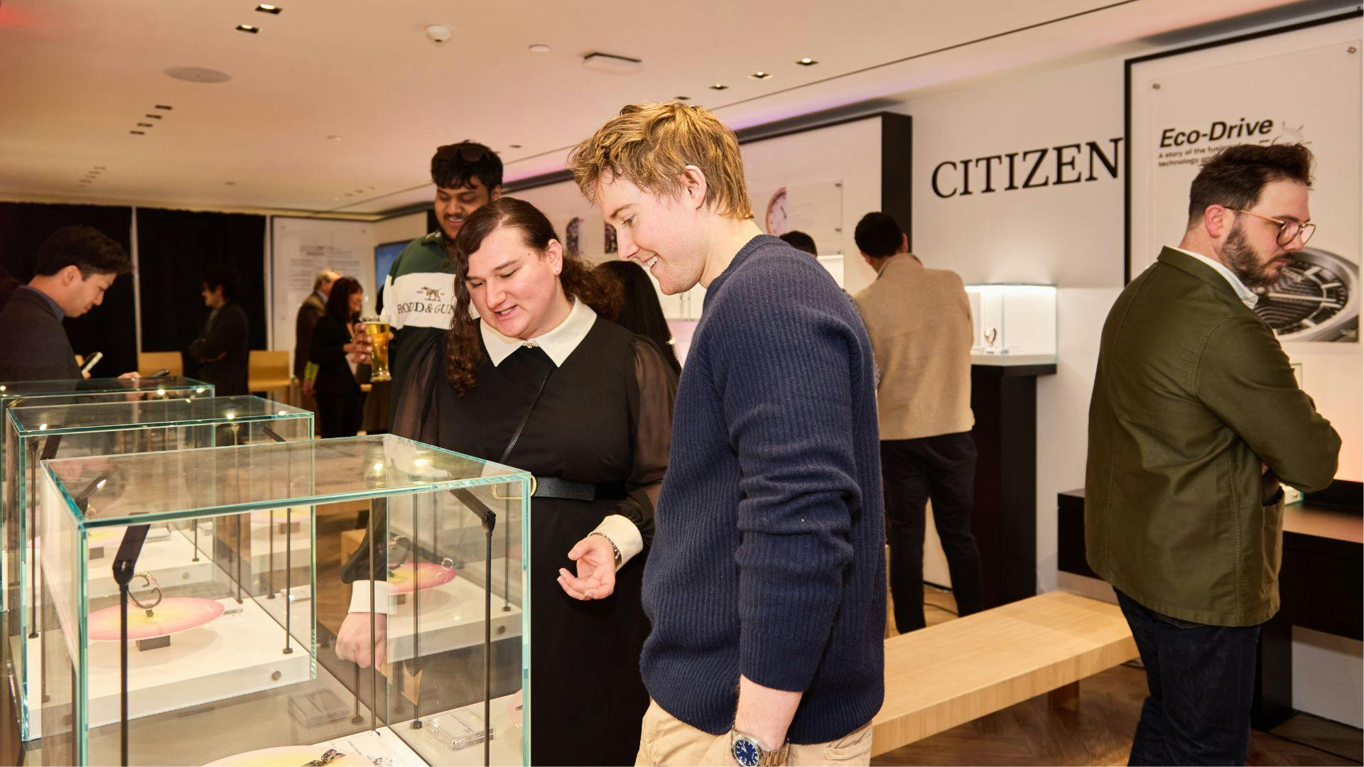 来場者たちはエコ・ドライブの歴史、開発、そして進化について理解を深めるディスカッションに耳を傾けた。パネリストたちは、現在展開されているエコ・ドライブ搭載モデルの幅広さを振り返るとともに、今後さらに多様なスタイルのエコ・ドライブウォッチを生み出していくという技術的な志について語った。世界中すべての人々に時計を届けるという、100年以上にわたるシチズンの理念は、エコ・ドライブの成功によっていまなお受け継がれている。そしてその成功は、さらなる長時間駆動、より一層の低消費電力化、存在感のある長く重い針、そしてより小型のケースサイズといった新たな可能性の探求へとつながっているのである。会場であった、ニューヨークのシチズンウオッチグループのフラグシップストアに位置するフラッグシップ・ミュージアムが、エコ・ドライブの歩みを体感できる没入型の空間へとアップデートされ、シチズンの新たなグローバルキャンペーン、“Powered by Any Light”の特別上映も行われた。来場者は会場を巡りながら歴史的なデザインやヴィンテージ広告に触れ、コミュニティメンバーたちとの交流を楽しんだ。